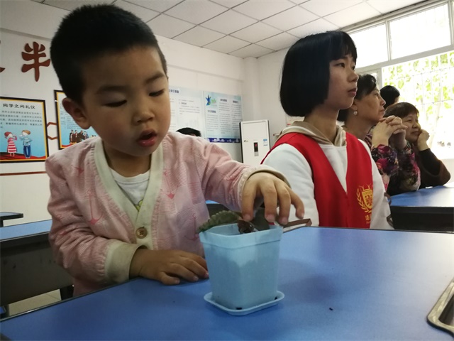 我叫王乐乐,我在江亭路社区的教室里等着志愿的哥哥姐姐的到来。身旁的志愿者姐姐的鼓励给了我莫大的勇气,志愿者哥哥奖励的小盆栽是对我的肯定。我小心翼翼地端着盆栽,听志愿者哥哥给我们讲解关于多肉的栽种技巧和注意事项。我有许多不懂的问题,举起手问:“多肉会开花吗?这种多肉叫什么名字呢?”大哥哥仔细回答我的疑问。我相信在我的好好照料下,它一定会茁壮成长!