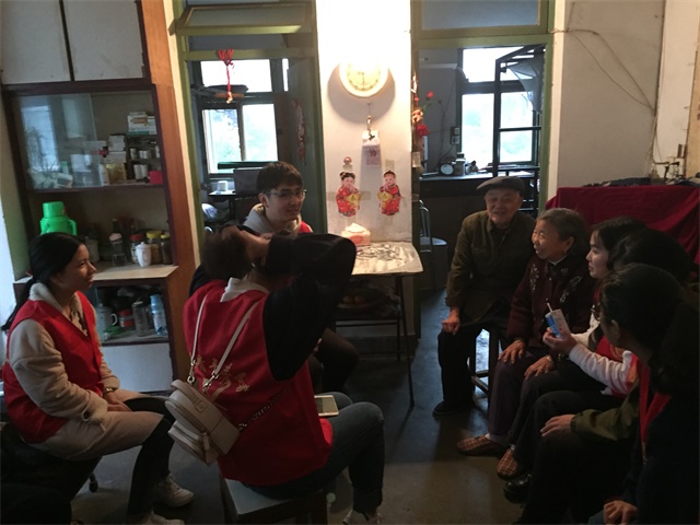 两个老人会像自己的爷爷奶奶一样握着我们的手唠唠叨叨;会因为我们的一个小小的玩笑而开怀大笑;也会轻轻抚摸着我们的脸说年轻真好大孙女真好。最受益的老人对当今的时事知之甚详,对流行的看法也颇有见地,还鼓励我们平时多参加一些活动,学习更多的生活知识,但是最最重要的是保养好自己的身体,只有身体好才能享受到一切。奶奶还跟我们分享了她年轻时候当会计的故事,就算宁愿去磨豆腐,也不会帮单位做假账了,老人一直跟我们强调城市的重要性,就算是让我一辈子当个普普通通的小职员,我也要双手干干净净的老人的话字字真言,受益匪浅。
