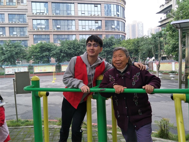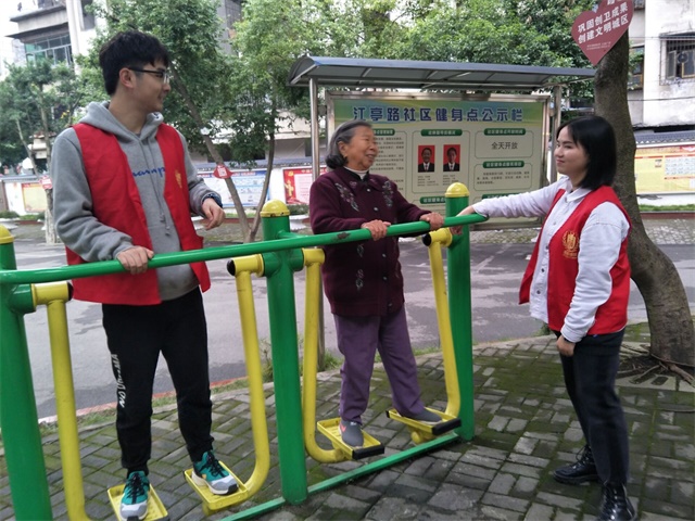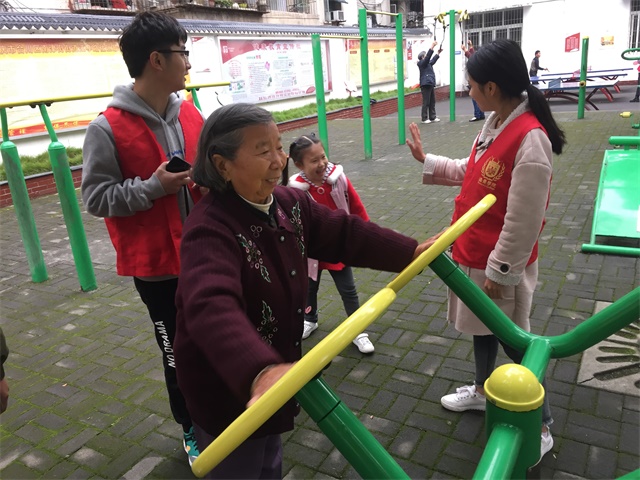 随着国民经济的发展,我国已进入老龄化社会,随之产生这样了一个社会问题,年轻人忙于工作而顾不了家,老人们只能孤单一人留在家里,所以志愿者们带着老人出门进行户外运动,老人抬抬腿、伸伸腰,仿佛又找回年轻时候的意气风发。
