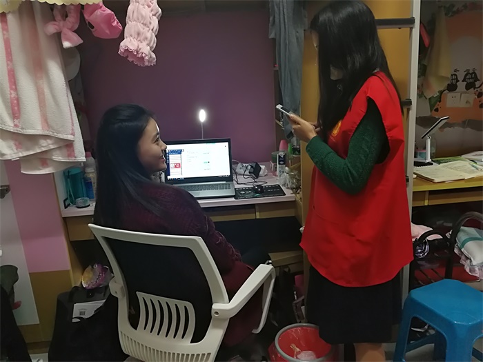 在查寝过程中,志愿者们发现,和开学时相比,同学们的内务整理有所改善。一个月前,部分寝室地面和桌面并不整洁,鞋子摆放凌乱,垃圾没有及时扔掉。且由于不常开门通风,部分寝室内有异味。本是强烈呼吁同学们不选择外卖就餐,却还是出现了在寝室中外带熟食的现象。这样的情况对同学们的学习和生活都有着或多或少的负面影响。现如今,大部分寝室物品整理较有序,有的寝室贴上了一模一样的壁纸,地砖上铺满了软垫,整个寝室充满生气和仪式感。