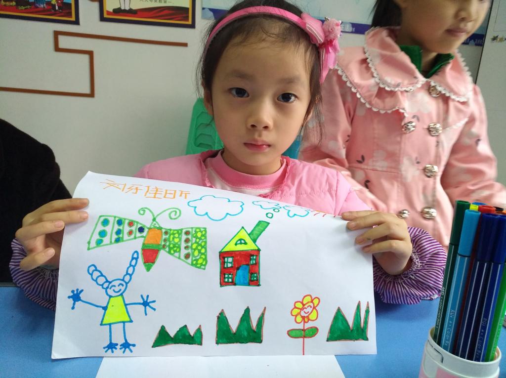 志愿者们将提前准备好的彩笔送给了小朋友,并铺好了白纸,带着他们作画。多彩的颜色对小孩子来说有着不同寻常的吸引力,她们在课桌上安静的画着,不停地转动自己的小脑袋瓜。小孩子的想象力是难以估量的,每幅作品都有它自己的意义。看到小朋友的成果,志愿者们不由得称赞:“小可爱你们真棒!”
