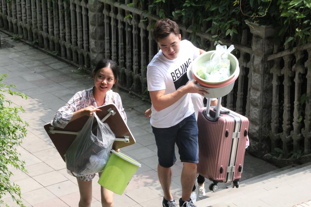 远景学院从2013级起至今,都拥有一个非常好的优良传统,每一届新生入住C6时,都会有上一级的学长学姐去迎接,做到一对一接待,或帮助他们拎行李,或帮助他们答疑解惑,让他们在宿舍搬迁过程中感受到远景大家庭的温暖。