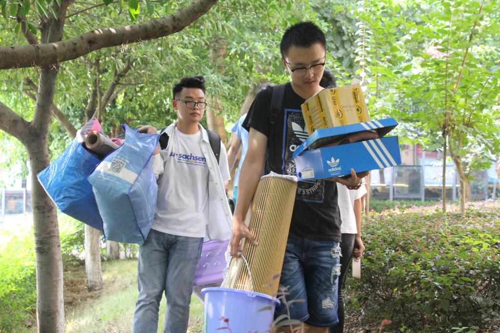 远景学院为了迎接2017级新同学的到来,早早的做足的充分的准备,综合办办公室的老师提前协调好宿舍搬迁所涉及到的院系和部门,争取相应的支持,校车早早的等候在涉及到搬迁的寝室楼下协助同学们搬运行李,宿舍管理员细致耐心的为每一位新生办理各项宿舍转接手续。综合办的老师和团总支学生会的干部们也早早地深入到搬迁一线,指挥和协调同学们的宿舍搬迁。2016级辅导员刘英春老师及时召开2016级年级会,专项布置一对一对接工作,落实到人,责任到人;2017级同学也是早早知晓自己即将入住的寝室,及早收拾好各自行李,并相互邀约相互帮助。每一名学长学姐在今天都是大力士,尽管太阳很燥热,但是学长学姐对新生的帮助那颗热切的心是充满了力量的,从一楼到六楼,热情高涨。我们的2017级小鲜肉无不感叹学长学姐们实在是太贴心了!