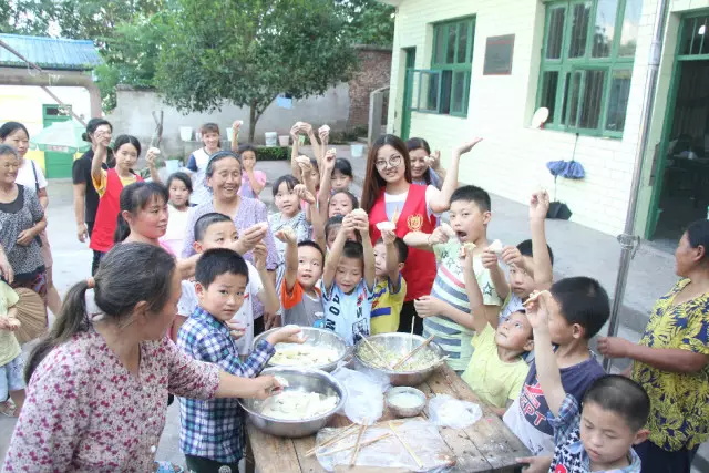 激动人心的颁奖仪式开始了,每一个参与过的小朋友都很兴奋,期待着主持人念到自己的名字,在接过奖状和奖品的那一刻,他们那种发自内心的被认可感和欣喜,是无法掩盖的。颁奖仪式结束后,志愿者便将“战场”转移到了国旗下的八仙桌旁,与家长和小朋友们一起准备“告别晚宴”。孩子们手里拿着饺子皮,学着大人的样子,舀上一勺肉馅,放在皮儿的中间,蘸上一点点水,一会儿便包出一堆可爱的饺子,有的像小小的贝壳,有的像扁豆,有的像海里的鲸鱼……他们尝试着自己动手,尝试着体会家人照顾自己的不易,尝试着学会生活、热爱生活。