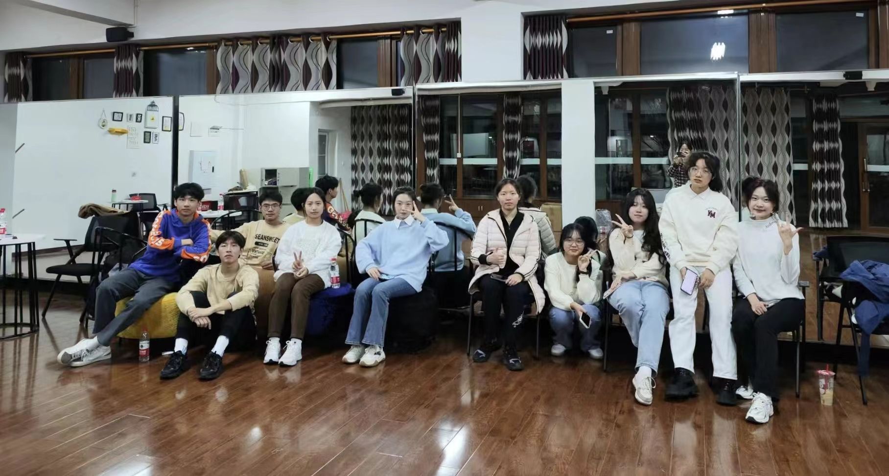 不知于月光共舞了多少时光,同学们在排练厅一遍又一遍练习,每天训练至少保持3-4小时的训练量,每一套动作都是一拍一拍一遍一遍的不断反复练习,尽管一直重复着相同的成套动作但队员们没有一丝的松懈与不认真。训练中队员们还会对比赛成套进行拍摄视频,在每一套结束后一起进行观看并讨论存在问题与对套路进行观看并讨论存在问题玉对套路进行修改与完善。不断追求卓越体现出远景学子不服输的精神,每一声“再来”是对学院荣誉的责任感,是每一位队员对自我的苛刻,是对比赛的尊重,也是对远景竞技体育精神的不断传承。