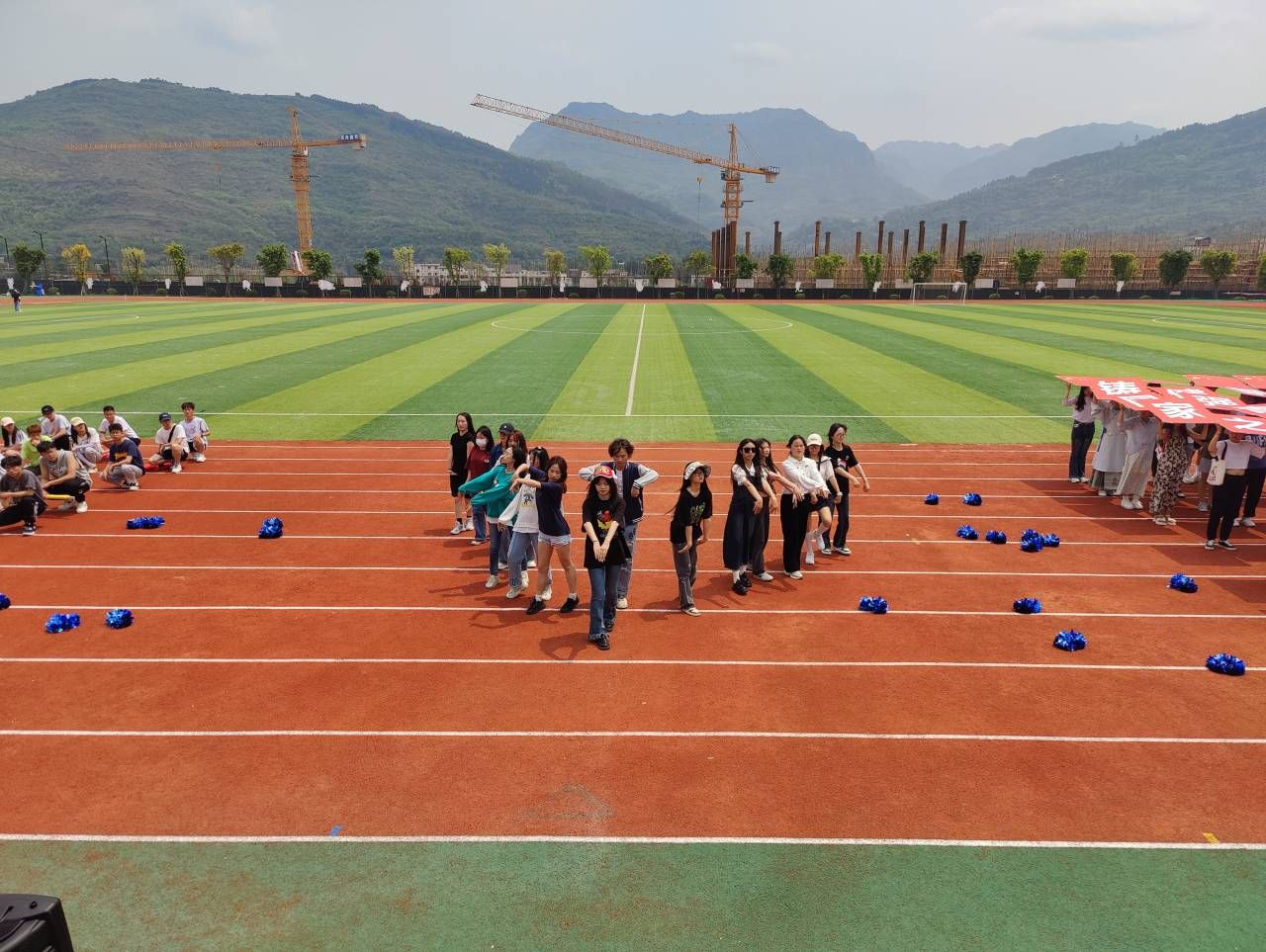 远景啦啦操队员们手拿蓝色花球,纯真笑容、动感舞姿整齐有力地活跃于跑道之上,随着音乐的变换更换队形,们跳出了自信与光芒,更跳出了远景学子的青春活力与个性张扬!