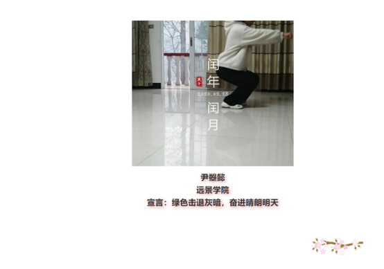 2020年的开端教会我们珍惜生命,我们关注疫情,每天为各种人和事所感动。为了阻止疫情的进一步扩散,许多同学选择呆在家中,而适量的居家运动,不仅能提高我们的免疫力,还能给我们营造积极向上的生活氛围。远景学院联合学生体育联合会在2月22日至2月29日特此推出“七天运动打卡活动——运动战‘疫’.行”活动。