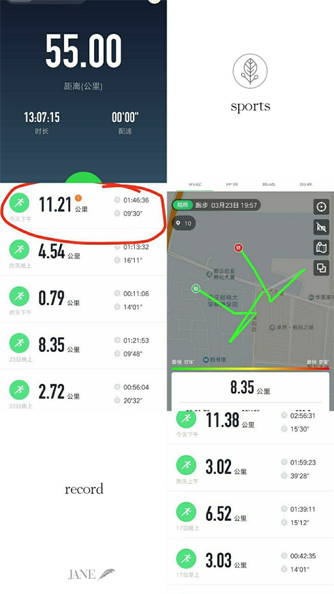 活动已经进行到了一大半,从浩浩荡荡的34人队伍中我们注意到了依然坚持不懈的两人队伍,陈楷同学和殷钟玲同学向我们展现的不仅仅是奔跑者的风貌,更是他们青春时期持之以恒的风采。纵使疾风骤雨,都无法阻挡他们前进的脚步。看着他们分享给工作人员的公里数截图,5.58km,7.42km,6.79km…这些映入眼帘的数字,也许在我们看来,再普通不过,不过在他们看来,却是他们一路走来最好的证明。是毅力的证明,也是精神的证明。