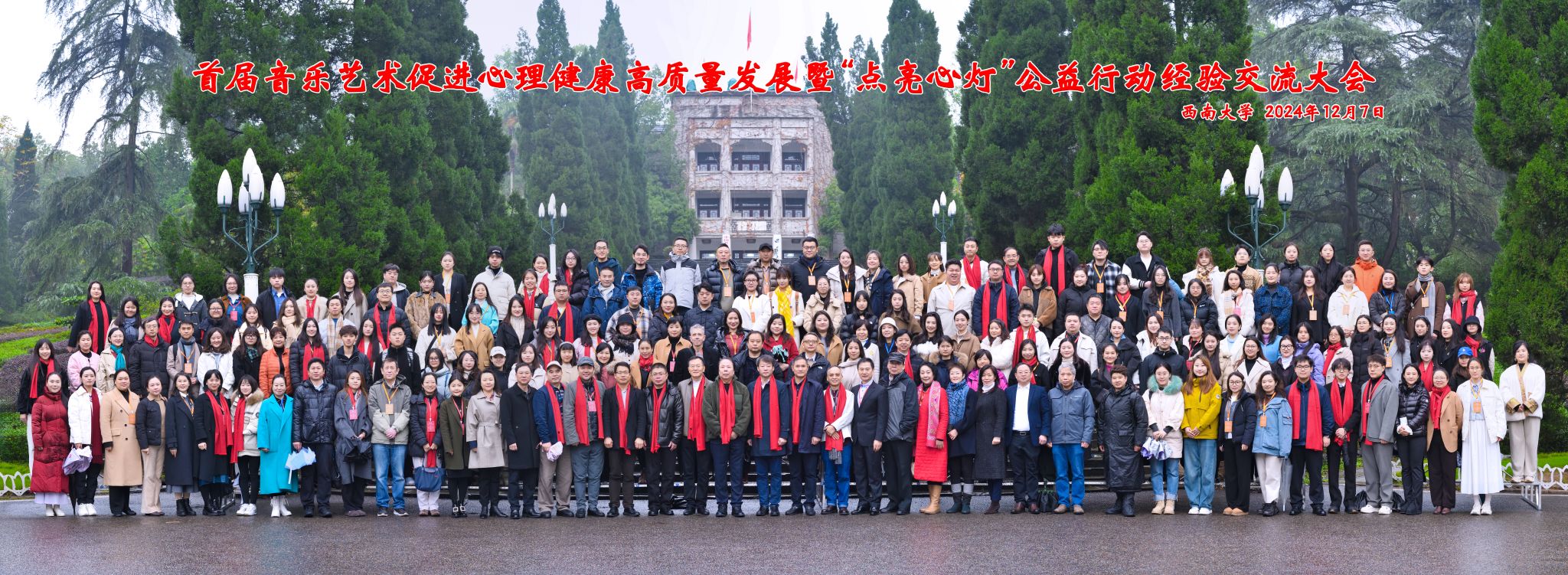 在冬日和煦暖阳的映照下,远景学院师生满怀期待与兴奋,踏上了前往西南大学的学术交流之旅。本次交流大会以“点亮心灯”大厦为主阵地,以“音乐艺术促进心理健康高质量发展”为核心,围绕音乐疗愈的理论基础与实践应用分享最新的研究成果、实践案例,通过专家报告、大会发言、圆桌论坛、沉浸式音乐心理健康体验、音乐心理剧、为中国音乐心理健康的公益服务释放“点亮心灯”的满满正能量。