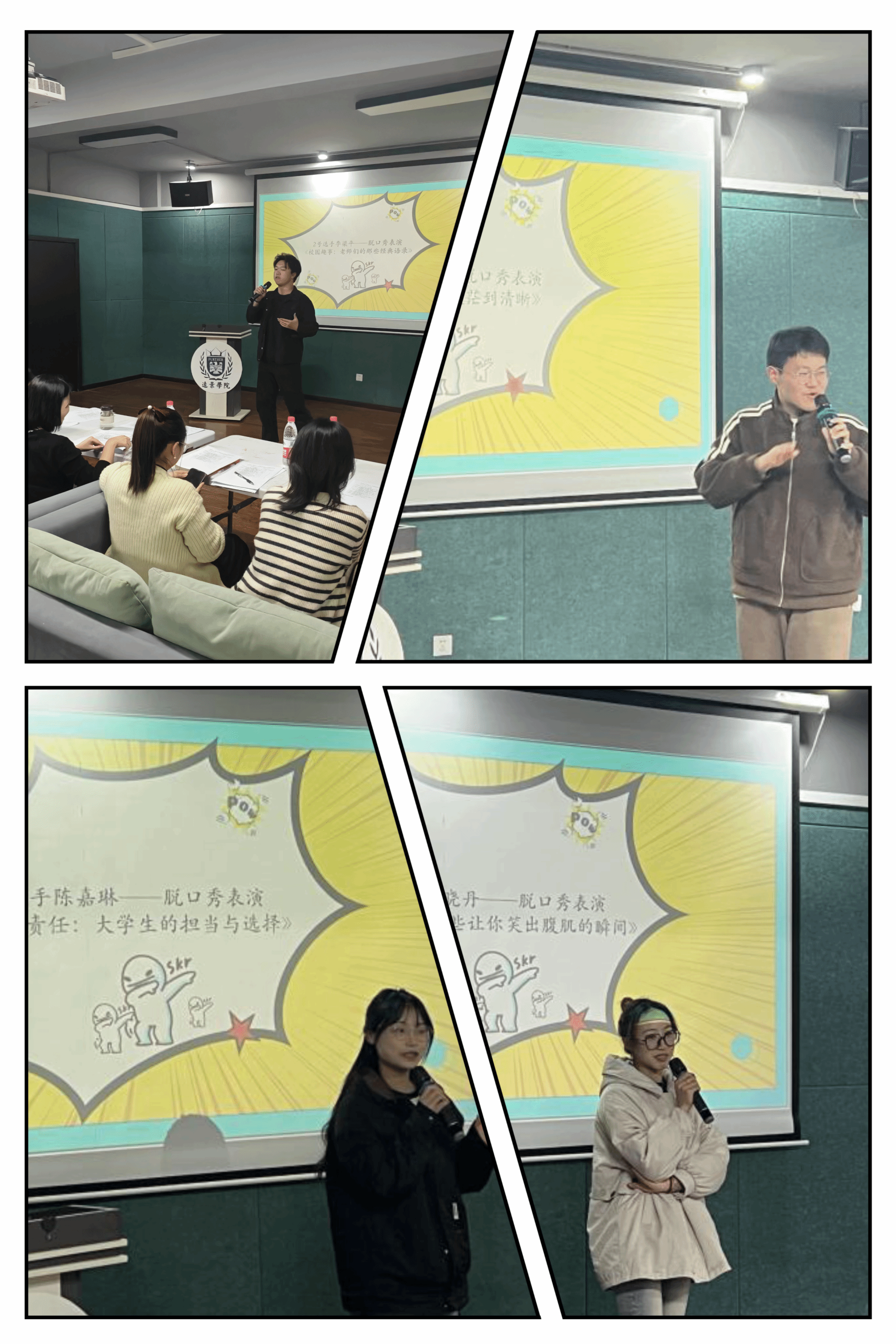 在脱口秀环节中,选手们就“青春责任”、“社会担当”、“校园趣事”等话题,用独出心裁的语言风格和专业的表演能力为所有评委观众带来了一场又一场“笑剧”。