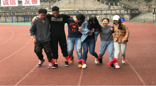 简单的齐心协力站起来过后就是难度加大的两人三足游戏了,这个游戏不仅考验个人的四肢协调性,还考验了全队的团结性。慢的要跟上快的,快的要顾着慢的,要彼此扶持,彼此融合才能取得最好的成绩。