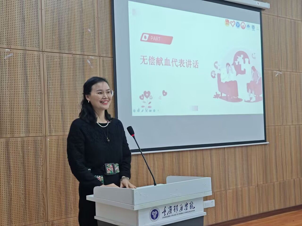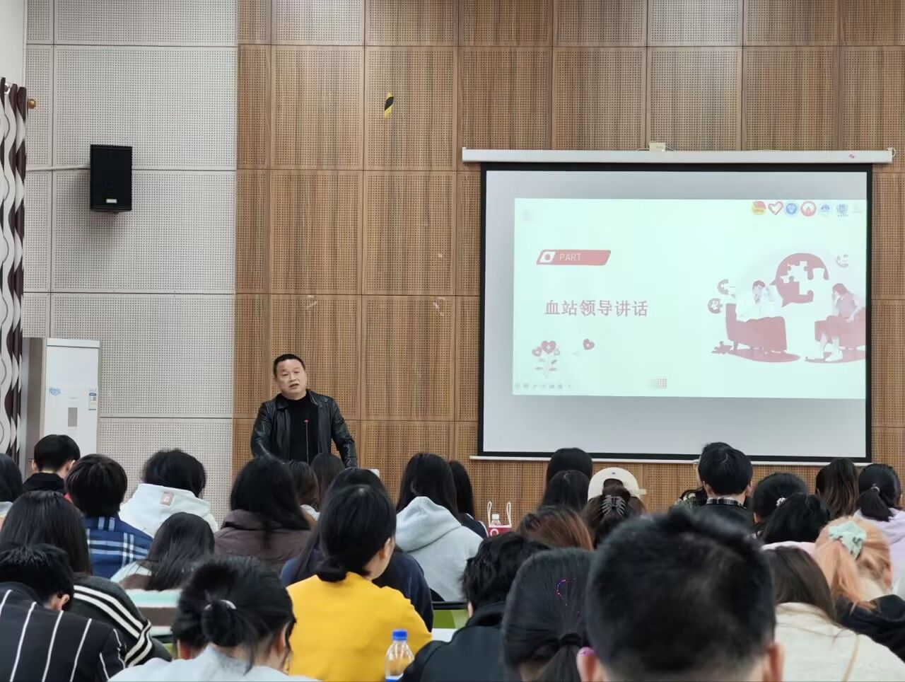 讲座伊始,合川中心血站站长袁燚登台致辞,用简洁有力的发言为活动拉开序幕。袁燚站长以临床用血的真实案例切入,阐述无偿献血对挽救生命的重要意义,强调青年群体在公益事业中的中坚作用。