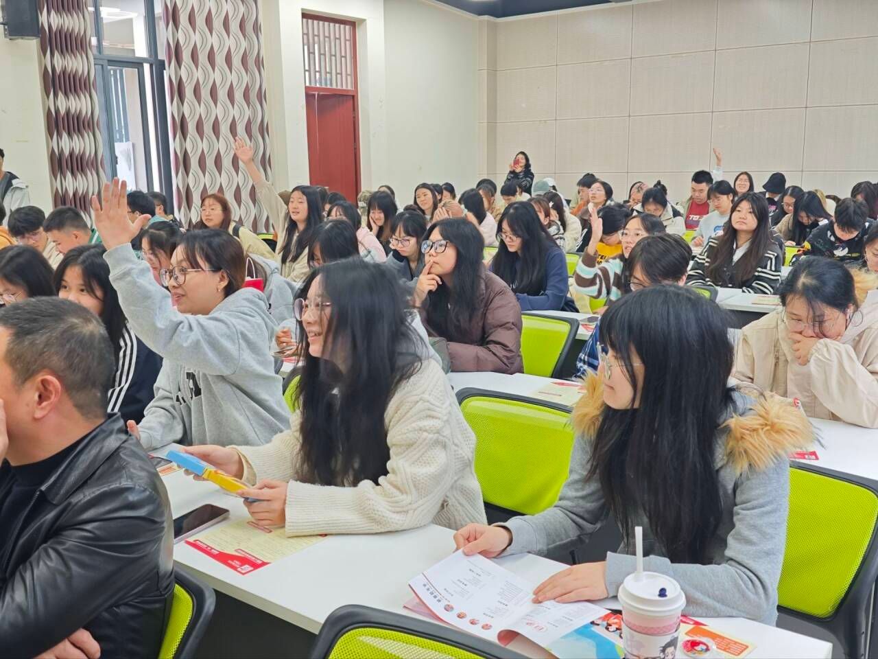 “听过再多热血故事,不如做行动的巨人。”学校团委刘月老师在总结讲话中发出倡议,呼吁学子们将讲座中的收获转化为实际行动,以青春之名扛起社会责任,用无偿献血为生命“续航”。为巩固宣讲成果,现场设置的有奖问答环节点燃全场热情,“我国法定献血年龄范围是多少?”“一次常规献血量为多少毫升?”等问题刚抛出,学子们便踊跃举手抢答,准确的回答展现出同学们良好的学习效果,答对者收获的不仅是血站准备的暖心礼品,更让投身公益的信念愈发坚定。