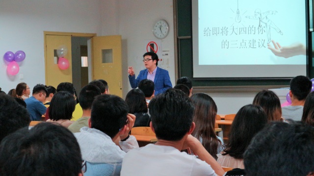 本次年级会还邀请到了管理工程系的辅导员廖阳老师为同学们作出就业分析和指导。廖阳老师作为学校资深的就业指导老师,从他历年的就业工作经验角度,结合同学们目前所处的年级从就业形势、就业方向等为同学们作了全面的就业分析和指导。他鼓励大家应该未雨绸缪,提前做准备;应该明确方向,向着目标前进;应该找准方法,以求事半功倍。
