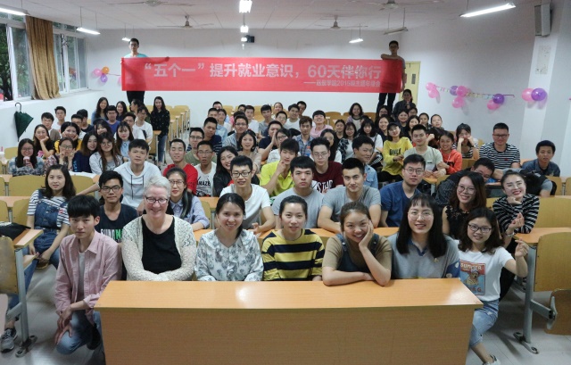 当前,2018届毕业生求职进入了尾声阶段,2019届学生即将登上毕业求职大舞台,为培养学生就业意识、增强对职业定位的独立思考,树立求职的危机意识,远景学院2015级于5月9日16:30-18:00在4104教室召开了“‘五个一’提升就业意识,60天成长计划伴你行”的主题年级会,通过一系列求职训练帮助全体同学唤醒就业意识,清晰职业定位,明确职业目标。应邀出席主题年级会的嘉宾有远景学院院长Gwen Bennett、远景学院执行院长皮若兰、管理工程系辅导员廖阳等,本次年级会由辅导员杨敏主持。