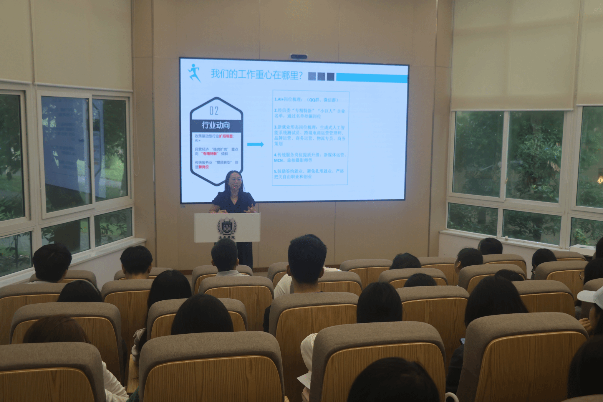 活动开篇,学校就业创业科科长伍早金老师以“新时代的就业挑战与机遇”为主题,为学生搭建宏观就业认知框架。伍老师结合最新行业动态与本校学生就业意向调查数据,从就业市场整体趋势、学生岗位选择倾向、地域与行业发展差异等方面展开深度分析,清晰指出当前就业环境中的挑战与潜在机遇。同时,伍老师特别纠正“就业有先后、选择分优劣”的误区,详细介绍“三支一扶”、西部计划等基层就业项目的政策优势与发展前景,鼓励学生打破思维局限,根据自身特长拓宽就业赛道,在多元选择中找准发展方向。