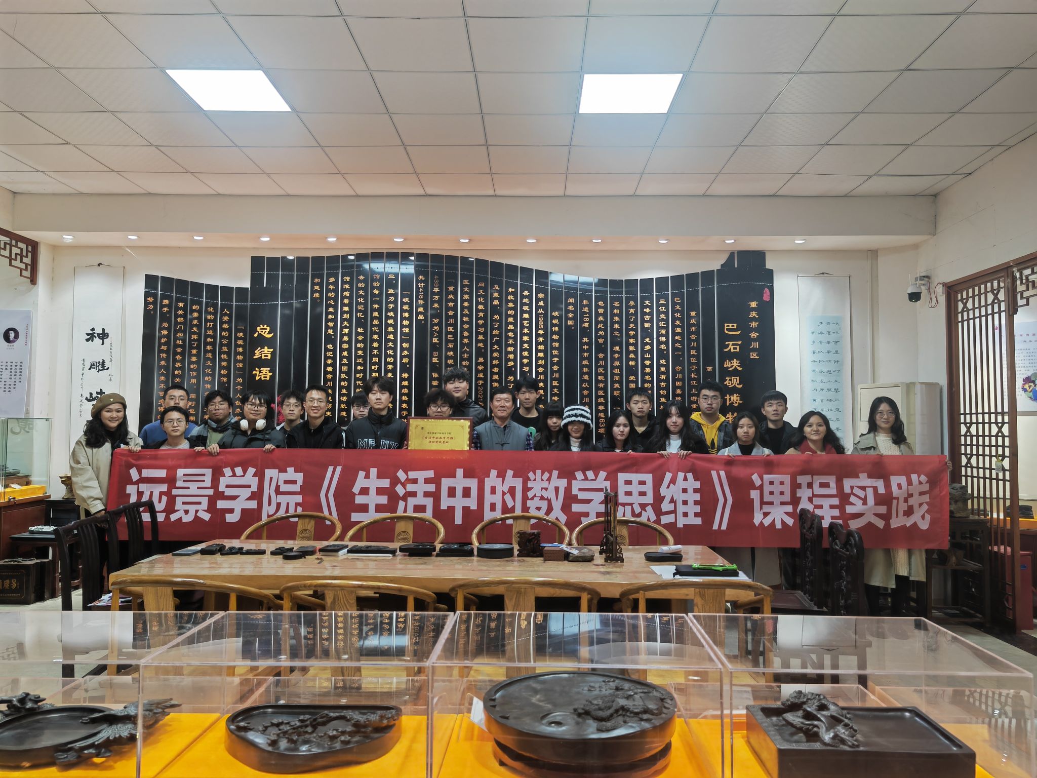 为培养高情商管理型应用人才,提升学生实践能力、交流能力、创新能力和跨学科思考能力。《生活中的数学思维》课程组于2023年12月10日与合川峡砚博物馆达成合作协议共建实践基地,以期通过实践基地,持续推进市级一流社会实践课程申报工作。