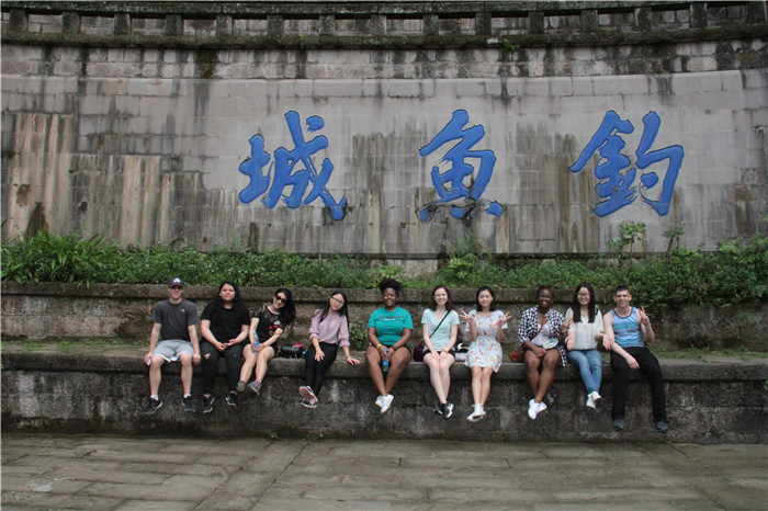 到达钓鱼城景区门口,志愿者首先为他们简单讲解了钓鱼城的历史故事,跟着志愿者的脚步,NIU的同学们一会穿梭于钓鱼台、护国寺、悬佛寺、千佛石窟、皇洞、天泉洞、飞檐洞等古迹之间.