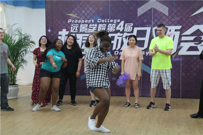 今天也正好是远景学院第四届校园开放日的第一天,晚上7点,远景学院在C区活动室举办了“家长开放日酒会”。NIU的同学们也受邀参与其中,酒会台上上劲歌热舞,台下家长和同学们时时爆发出热烈的掌声。此外同学们还准备了丰富多彩的游戏,如:击鼓传花,抢凳子,快速打热线等。虽然相互间存在一定的语言阻碍,但也并不阻挡双方对酒会氛围的感受。表演环节结束后,NIU的同学还积极邀请学院学生到舞台上自行表演,再次博得同学们一阵阵掌声,也让家长们感受到了远景学院对多元文化的包容。