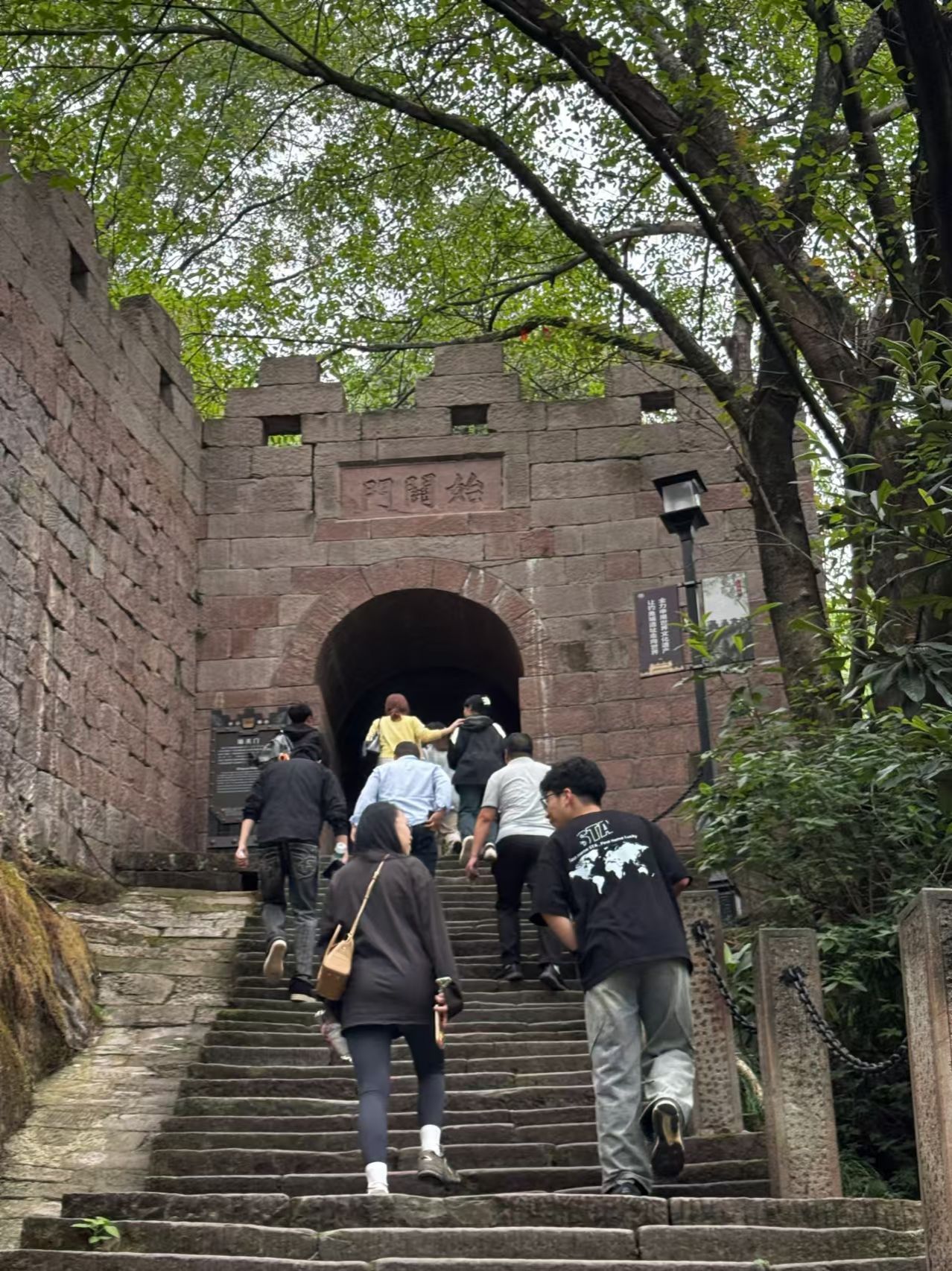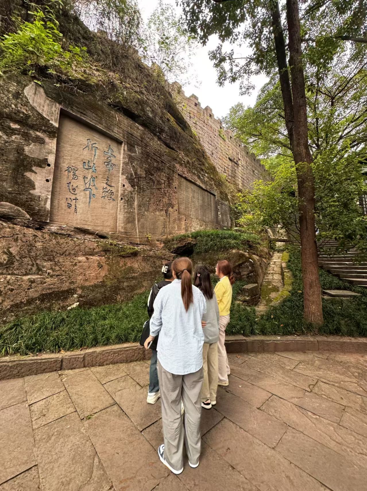 在秋日的暖阳下,钓鱼城以其雄伟的姿态迎接着每一位访客。大家怀着对历史的崇敬与好奇,踏上了这片充满传奇色彩的土地。导师和同学们漫步在古老的城墙之上,感受着岁月的沧桑和历史的沉淀。钓鱼城的城墙坚固而壮观,仿佛在诉说着当年那场惊心动魄的保卫战。站在城墙边,眺望远处的山水,让人不禁感叹古人的智慧和勇气。