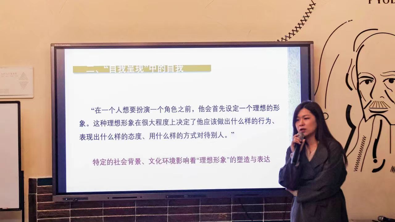 随后,陈老师为大家带来了欧文·戈夫曼的《日常生活中的自我呈现》,以人生如戏·全靠演技的互动提问开始,结合书籍中的“表演”理论和“游戏”理论,并以此来解释人类社会生活中复杂多变的人际关系以及人们如何进行自我呈现和沟通。陈老师以生动的新媒体议题与在场师生互动交流,并为大家提供了全新观察和理解生活的视角。