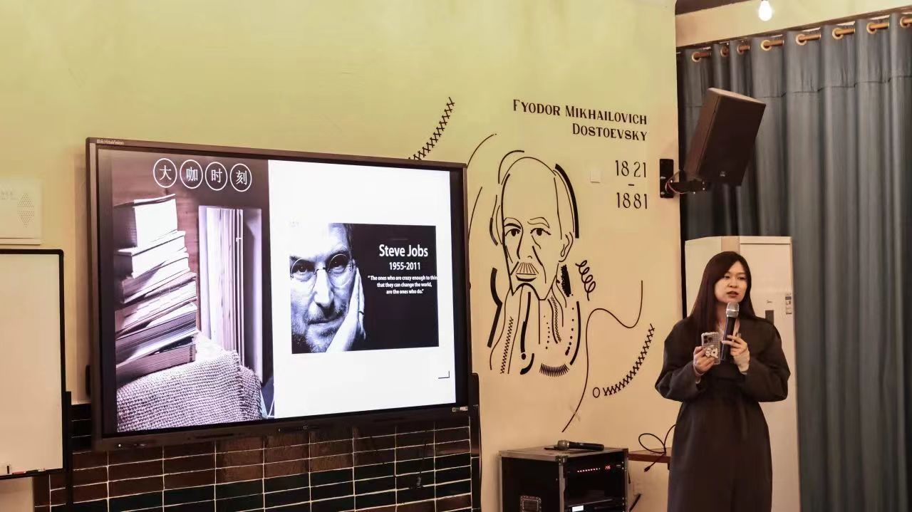 本次活动由陈曦老师主持,以“大咖时刻”开场。陈老师带来了信息产业大咖传记阅读计划的《乔布斯传》,对乔布斯先生曾在斯坦福大学的毕业演讲中提出青年要回顾并串联人生点滴的内容进行了分享。