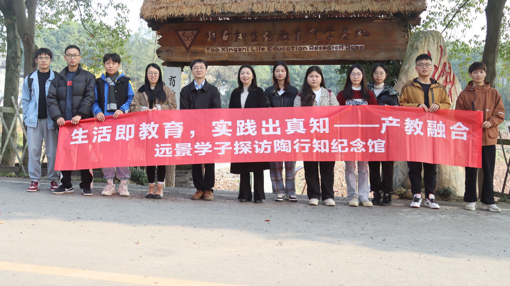 为积极推动远景学院创新式教学模式,深化“产教融合、知行合一”,培养具备全面发展素养的综合型人才,12月6日下午,黄煌、陈春彦老师带领其导师组成员到重庆市合川区草街陶行知先生纪念馆开展产教融合实践活,学习和践行陶行知先生的教育理念和精神。