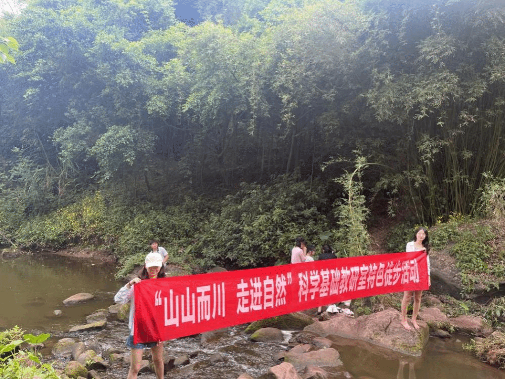 为了进一步深化课程改革,结合教研室课程特点,促进通识教学与课外实践相融合,拓宽学生视野,培养学生探索精神,丰富学生学习生活。2023年5月17日,远景学院钟婷婷老师、陈思含老师,带领导师组学生前往合川区云门村瀑布风景区,开展“山山而川,走进自然”科学基础教研室特色徒步活动。