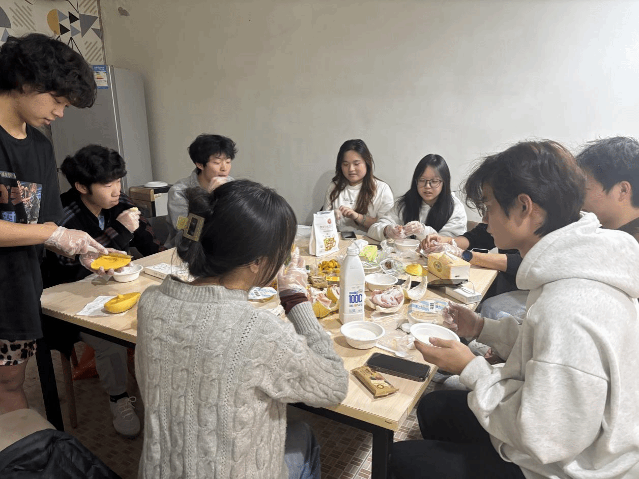 2025年11月12日晚,郭杨老师邀请其导师组的同学们齐聚一堂,一同走进厨房,亲手制作健康美味的餐点。从近来风靡社交网络的酸奶碗,到清爽解腻的固体杨枝甘露,师生们不仅享受了美食的乐趣,更在轻松的交流中拉近了心与心的距离。