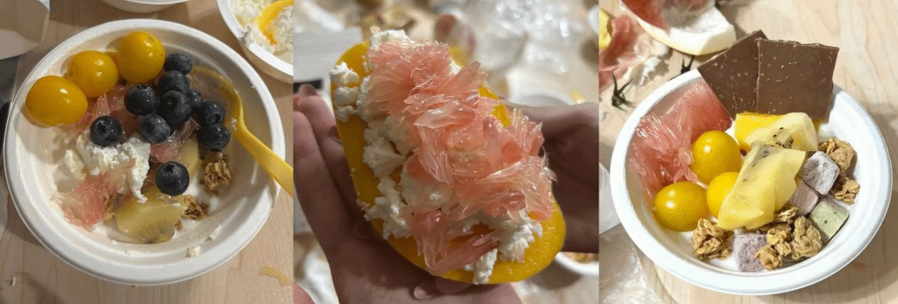 当一碗碗颜值与美味并存的酸奶碗和Q弹爽滑的固体杨枝甘露被端上桌时,整个活动达到了高潮。大家品尝着自己的劳动成果,脸上洋溢着满足的笑容。这不仅仅是一份甜品,更是师生情谊的甜蜜见证。