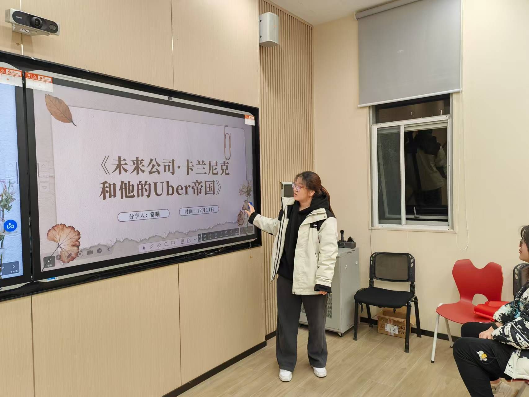 最后一位是常曦同学,她分享的书籍是《未来公司·卡兰尼克和他的Uber帝国》。在分享中,常曦同学介绍到该书深入揭示了Uber的商业帝国和创始人特拉维斯·卡兰尼克的雄心壮志。通过阅读这本书,她深刻体会到了创新、勇气和颠覆性思维在现代商业中的重要性。卡兰尼克的奋斗经历告诉我们,在快速变化的世界中,敢于突破和创新是企业成功的关键。Uber的故事激励我们不断追求卓越,勇于改变世界。