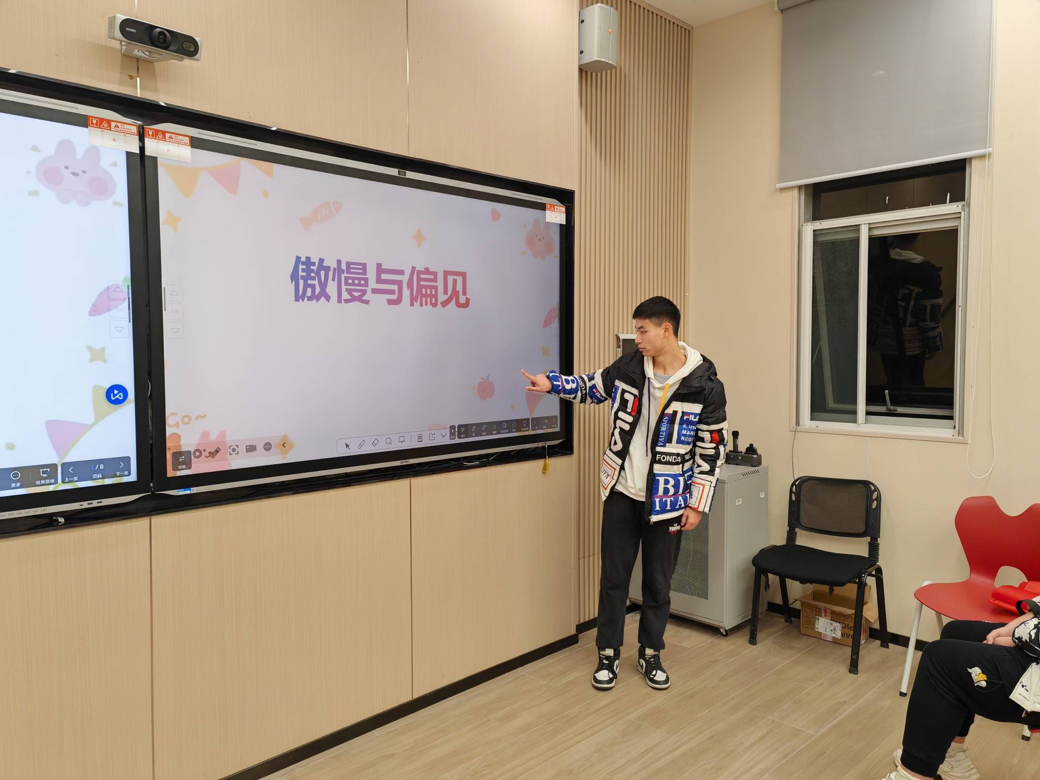 第三位李溪桐同学分享的是古典名著小说《傲慢与偏见》。在分享中,李溪桐提到,小说通过达西和伊丽莎白的爱情故事,揭示了傲慢与偏见如何成为人际关系的障碍,以及真诚与理解的重要性。它教导我们,不应以第一印象判断他人,而应深入了解后再下结论。同时,小说也强调了个人成长和自我反省的价值,提醒我们在追求幸福的过程中,保持独立和自尊。这些永恒的主题不仅让我们反思个人行为,也启发我们如何在现代社会中建立更和谐的人际关系。