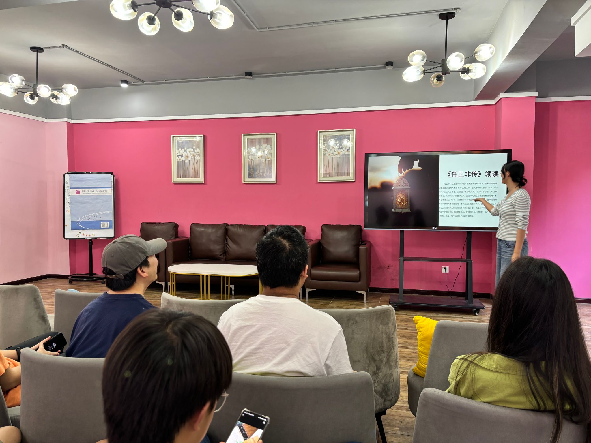 活动开始前,主持人李欢老师简要介绍了本次分享会的书目:《任正非传》、《牵风记》、《遥远的向日葵地》、《风来自你的方向》和《星期六晚我们去散步吧》。她强调本次读书分享会推荐书目呈现多元化特征,涉及题材广泛,内容形式多样,希望大家在不同的作品分享中收获成长。在活动中鼓励大家积极交流,分享阅读心得与感悟,以期在思想碰撞中产生智慧的火花。