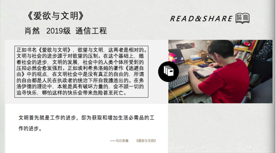 最后,戴华老师引用英国作家萧伯纳的话作为活动的结束“你有一个苹果,我有一个苹果,我们彼此交换,每人还是一个苹果;你有一种思想,我有一种思想,我们彼此交换,每人可拥有两种思想。”
