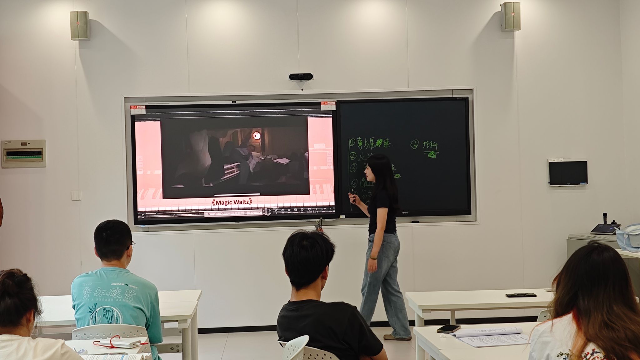 她选取了两个经典片段:一是主角1900在风暴中随着船体摇晃而演奏的紧张旋律,二是他初见心动女孩时温柔克制的音乐表达。这两个片段展现了音乐如何承载情绪、放大情绪,也唤起了学生的共鸣。