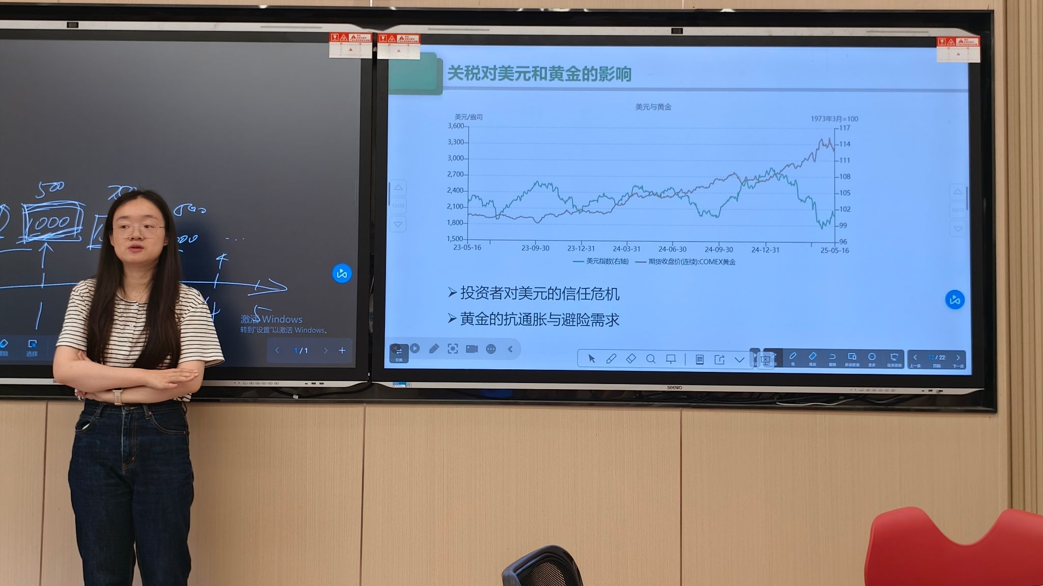 从资产价值和资产价格这两个基本概念出发,朱姝霖老师分别向同学们讲解了近期全球股市、债市和黄金市场的变化发展情况,并分析其与关税贸易战的内在关系和影响。