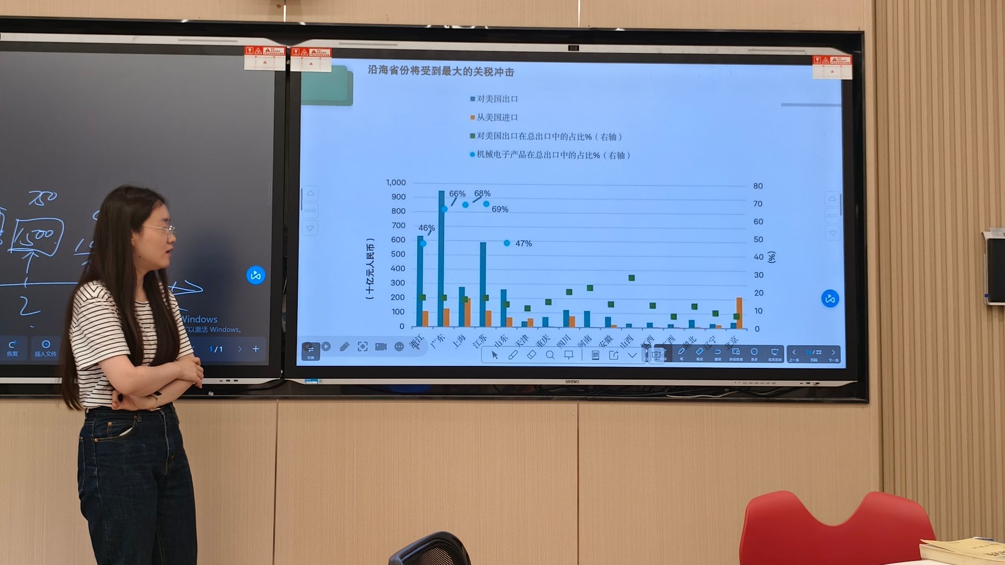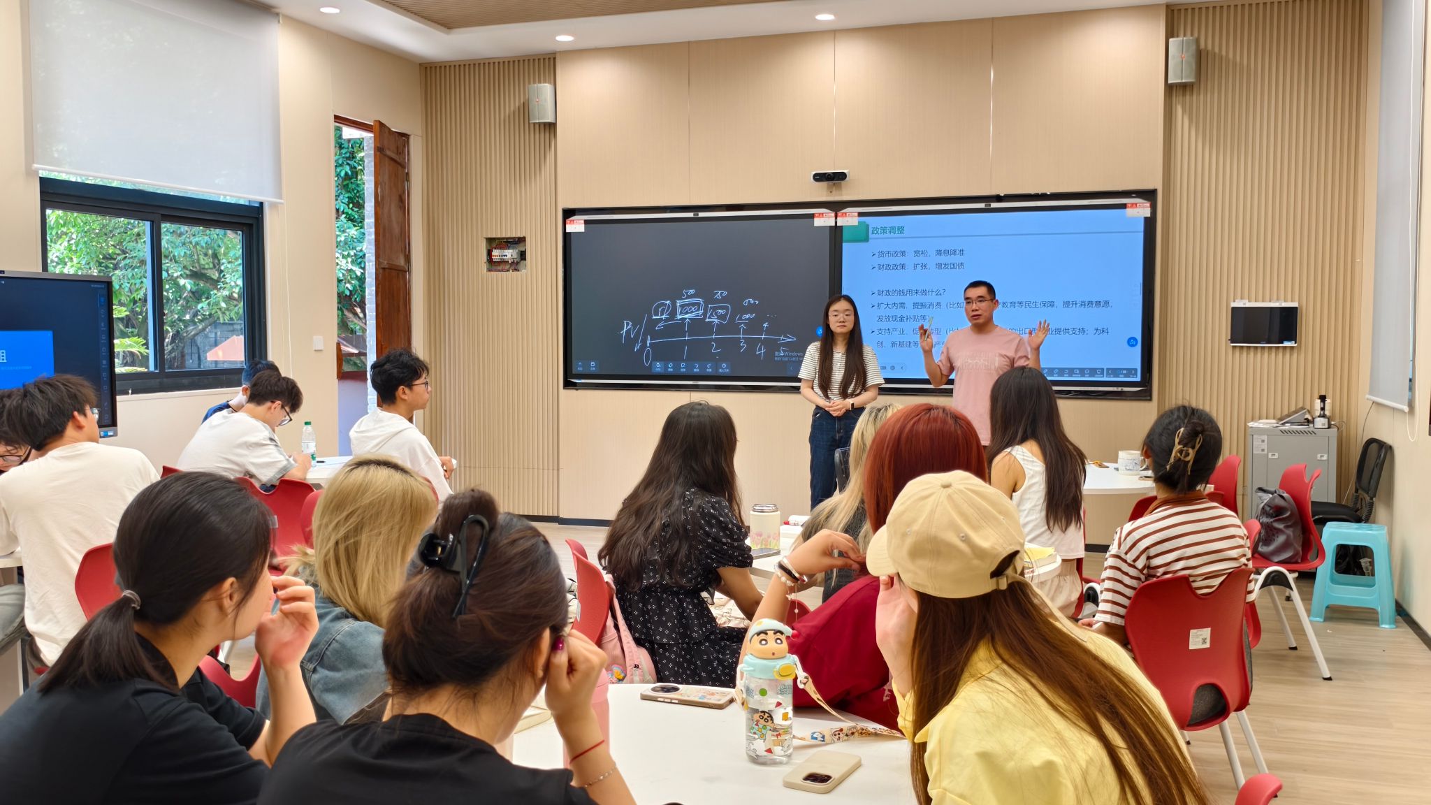 为使学生能从跨学科视角对复杂的国际经济问题进行思考,透视隐藏在现象背后的行为动机,2025年5月19日,远景学院主讲国际关系的杨阳老师携手金融学专业的朱姝霖老师,在《国际关系与全球治理》课程中,采用双师授课模式,就“从金融视角看特朗普发动贸易战的世界影响”这一专题展开授课。