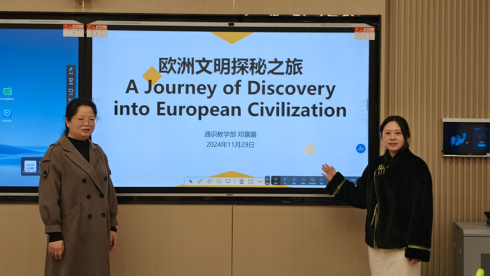 11月29日上午,一场别开生面的双师授课在远景学院智慧教室举行,课堂以“欧洲文明探秘之旅”为主题,由远景学院英语教师戴华与通识教学部历史教师邓露露联合授课,为学生们带来了一场跨越时空的文化盛宴。