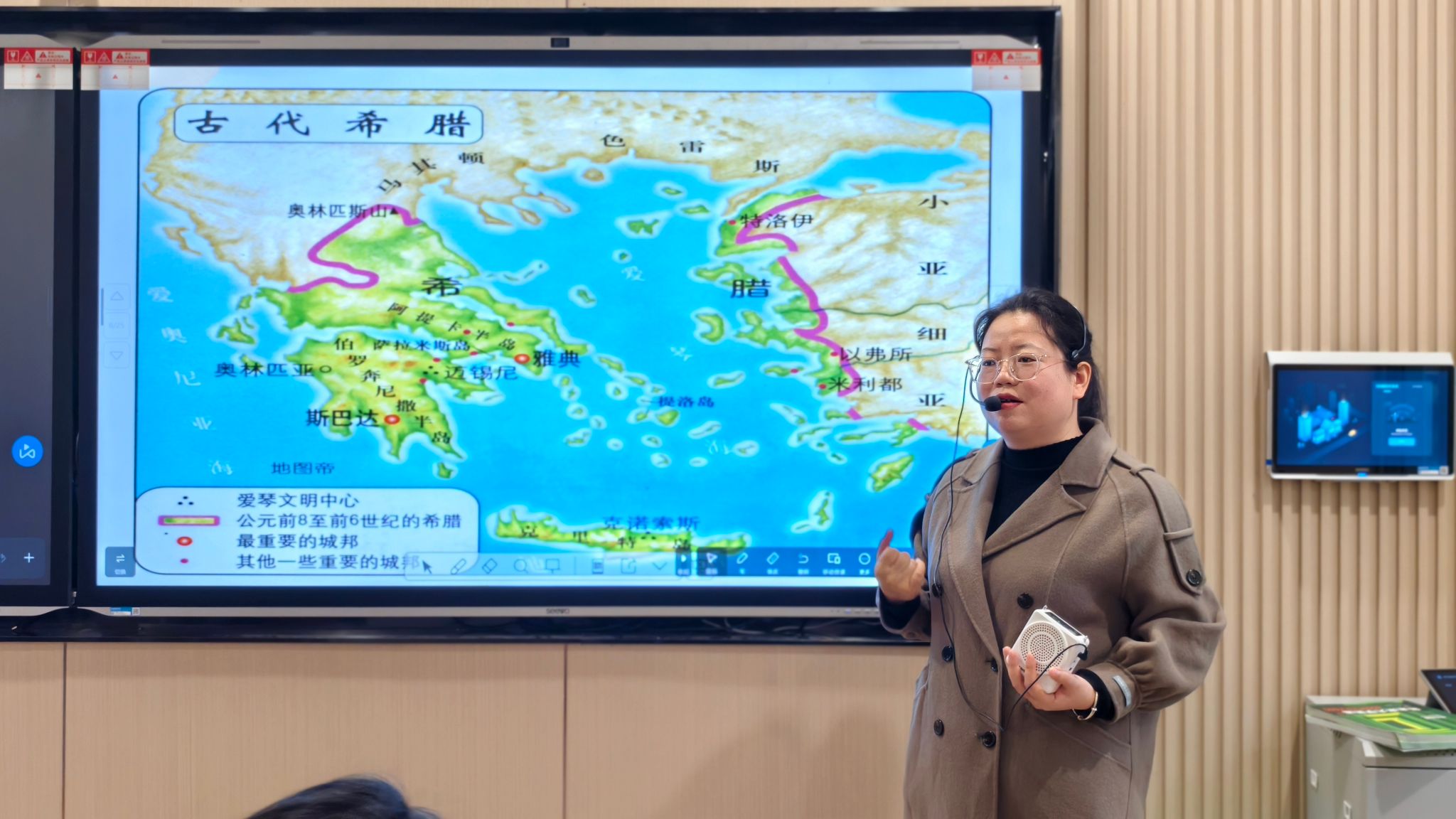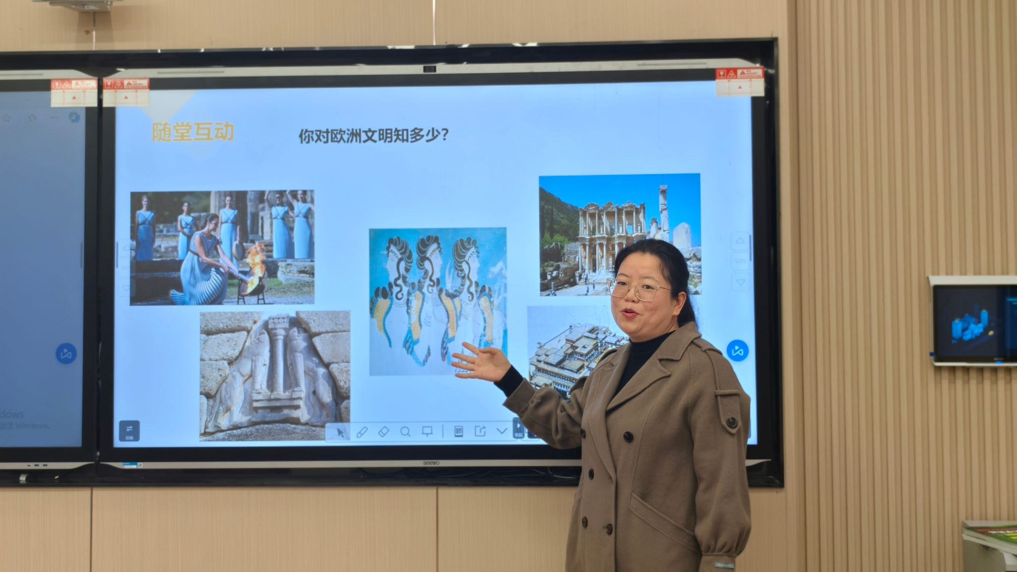 随后,邓老师接过话题,引领学生们进入欧洲文明的探秘之旅。她首先询问学生们对欧洲文明的了解程度,并进行了随堂互动。通过互动,邓老师发现学生们对欧洲文明虽有一定认知,但仍有许多未知领域等待探索。