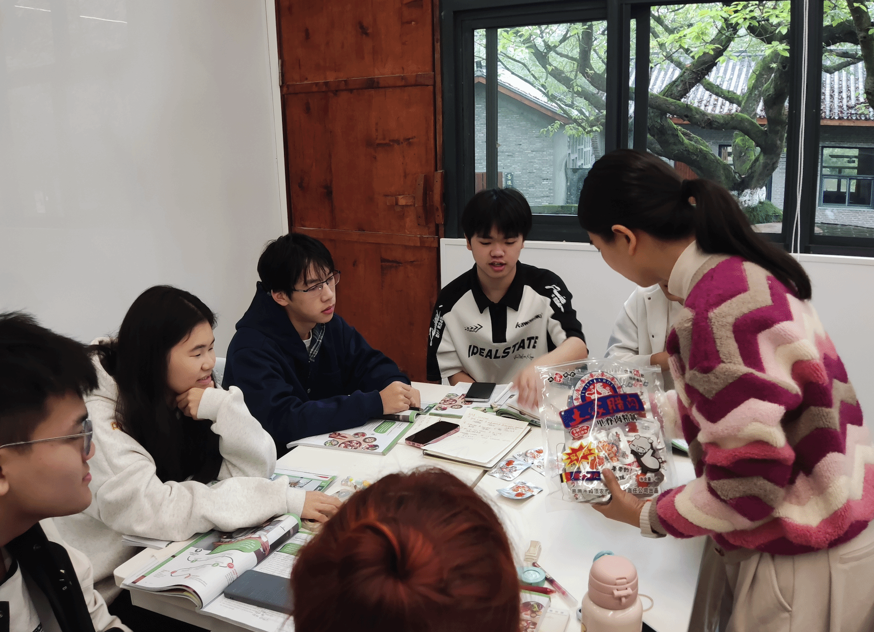 课程的最后,两位老师为全班同学带来了恩施的腊肉和新疆的奶茶,让大家共同品尝,加深了课堂的真实体验和互动。这一环节不仅使学生们更加身临其境地感受到中国美食文化的魅力,也希望在同学们的心中种下一个心锚,希望他们在未来再次尝到这些美食时,能够想起今天的课程。