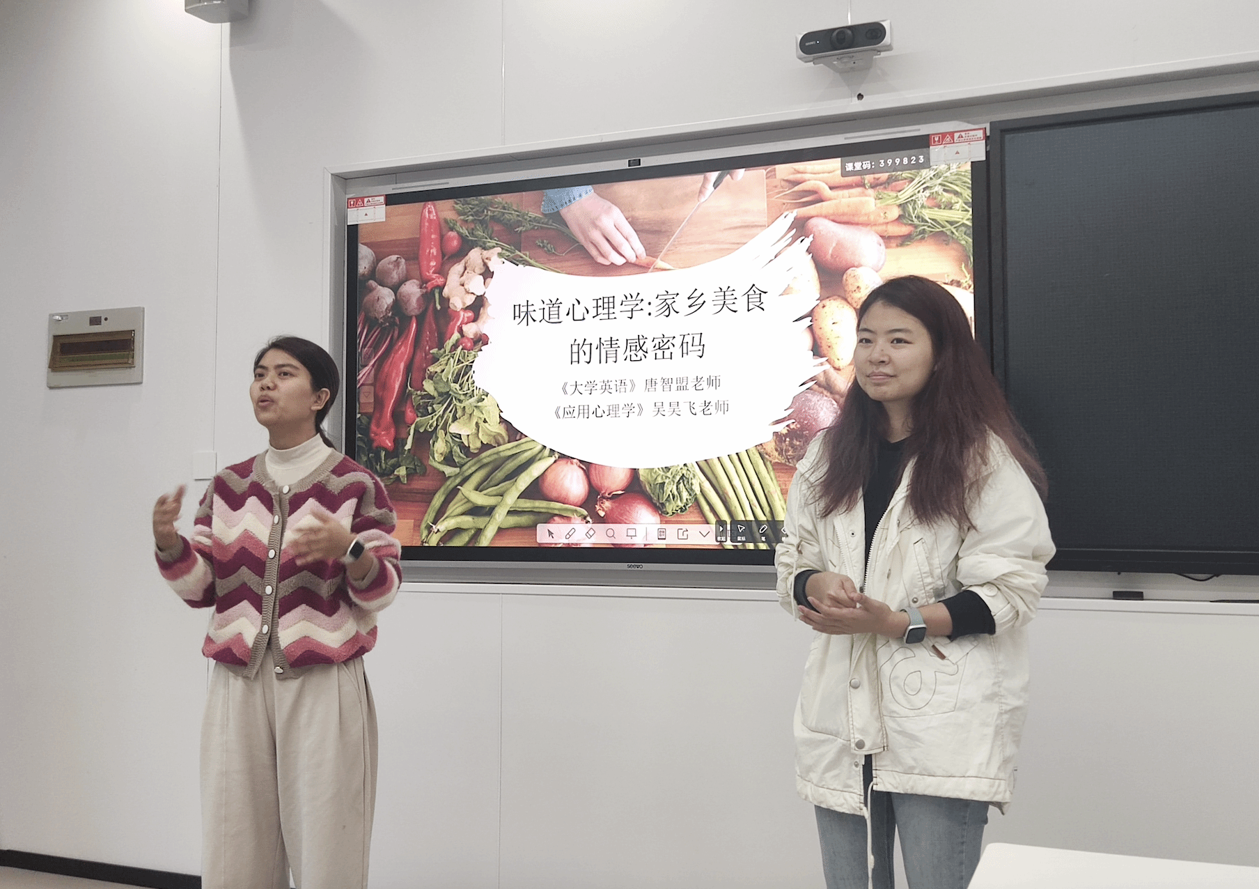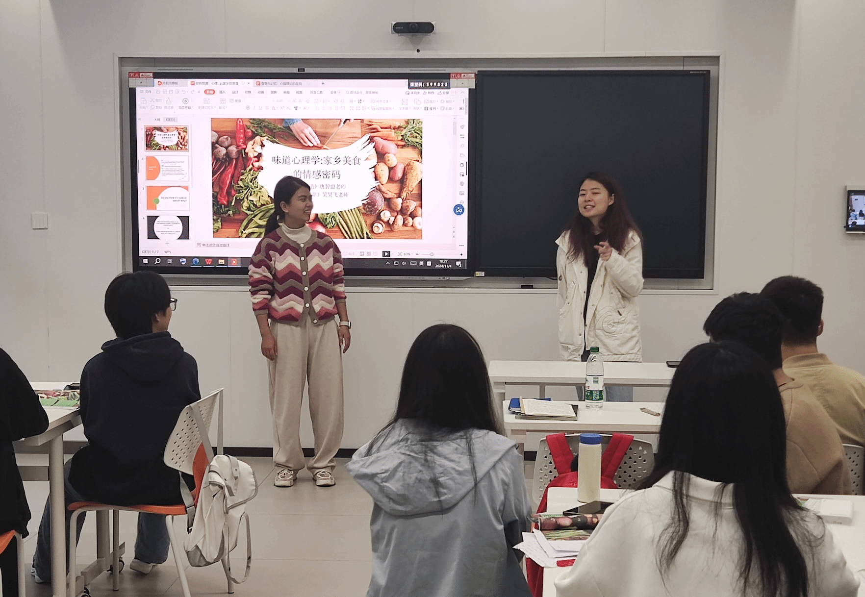 2024年11月4日,在唐智盟老师教授的大学英语(1)课程中,远景学院应用心理学课程教师吴昊飞受邀来到课堂,共同探讨“A Matter of Taste”章节,通过跨学科双师授课的方式,引导学生深入了解中国美食文化与心理学的联系。本次课程,不仅让学生从心理学的视角对中国传统饮食文化有了新的认识,也共同体味了跨学科碰撞带来的启发与乐趣。