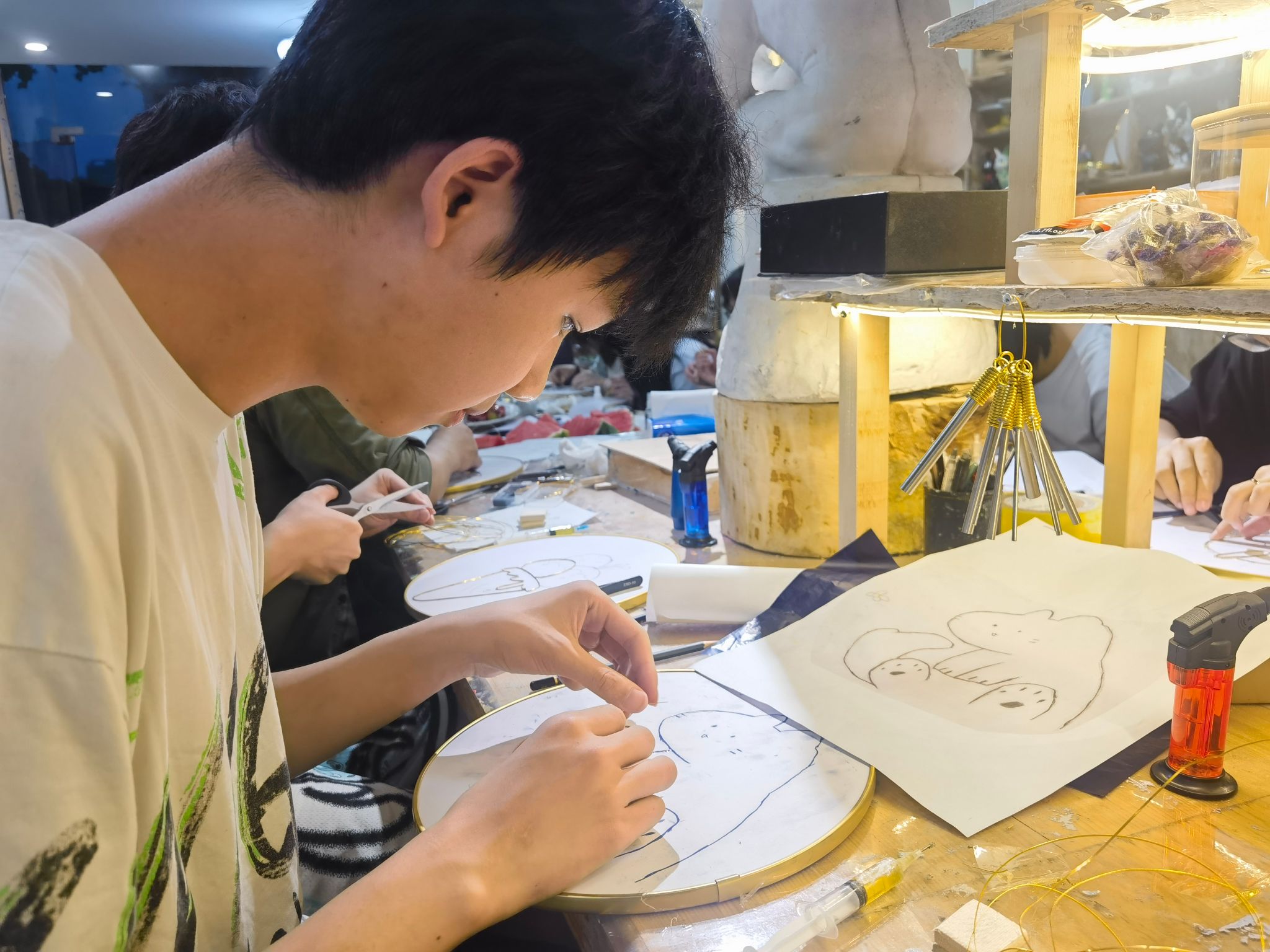 最后,来到了点蓝的环节。钟婷婷老师凭借自己对色彩的深刻理解,运用可视化原理,向学生们展示了色彩的魅力。她提到色彩是艺术的灵魂,是表达情感、传递信息的重要工具。在钟老师的指导下,同学们开始了点蓝的实践。他们运用不同的色彩,通过巧妙的搭配,将自己的作品装点得更加绚丽。整个点蓝过程仿佛一场色彩的魔法表演,让同学们沉浸在艺术的海洋中无法自拔。