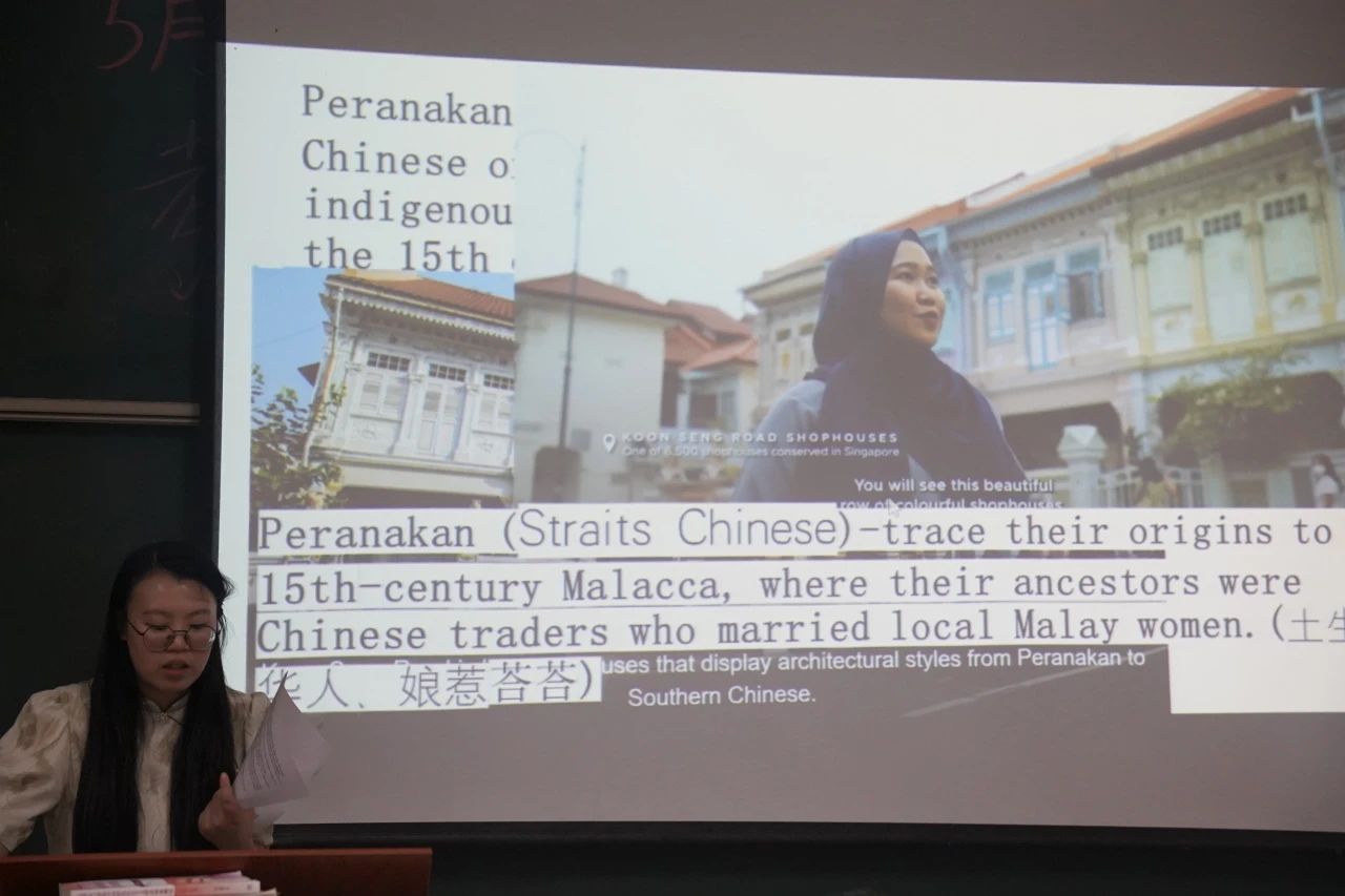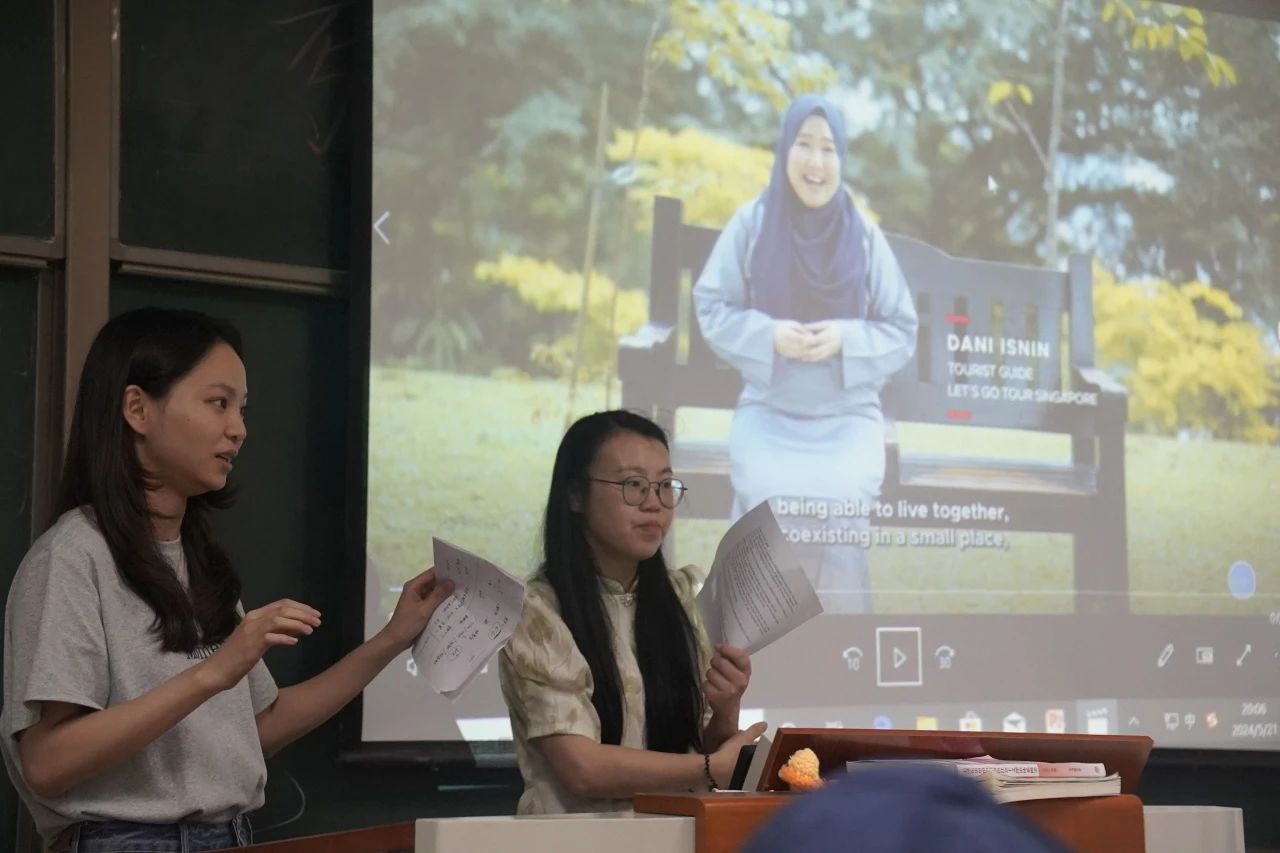 本次双师授课中,黄煌老师以其深厚的学术背景和丰富的教学经验,为学生们梳理了新加坡与马来西亚“爱恨情仇”的历史脉络和发展变迁,通过视频细致解读与问题导入,锻炼同学们的英语听写能力;而陈思含老师则以其独特的视角和亲身体验,为学生们呈现了新加坡文化的生动画面和鲜活细节,比如新加坡的商店在晚上10点后禁止售卖酒精的背后原因是因为多民族冲突的结果;唐人街上佛教寺庙、印度教神庙、清真寺等并立,各类建筑所呈现的多元文化让同学们对新加坡地域特色心驰神往。两位老师的默契配合和精彩讲解,亲身经历和深度解读,帮助同学们对新加坡有了更加全面和深入的了解,不仅仅带领学生们领略了新加坡的多元文化魅力,同时也进一步拓展了学生们的国际视野和跨文化交流能力。大家纷纷表示,这种新颖的教学模式让他们受益匪浅,不仅仅为他们提供了更加全面、深入的学习内容,还从不同的角度和层面引导学生进行思考和讨论,激发了自己的学习兴趣和积极性,为他们提供了更加多元化的学习体验。未来,他们将更加珍视和尊重多元文化,为推动文化多样性的发展和繁荣贡献自己的力量。同学们也很期待未来能够有更多这样的机会,能够如此深入地了解和体验世界各地的文化,提高自己的跨文化交流能力与视野。