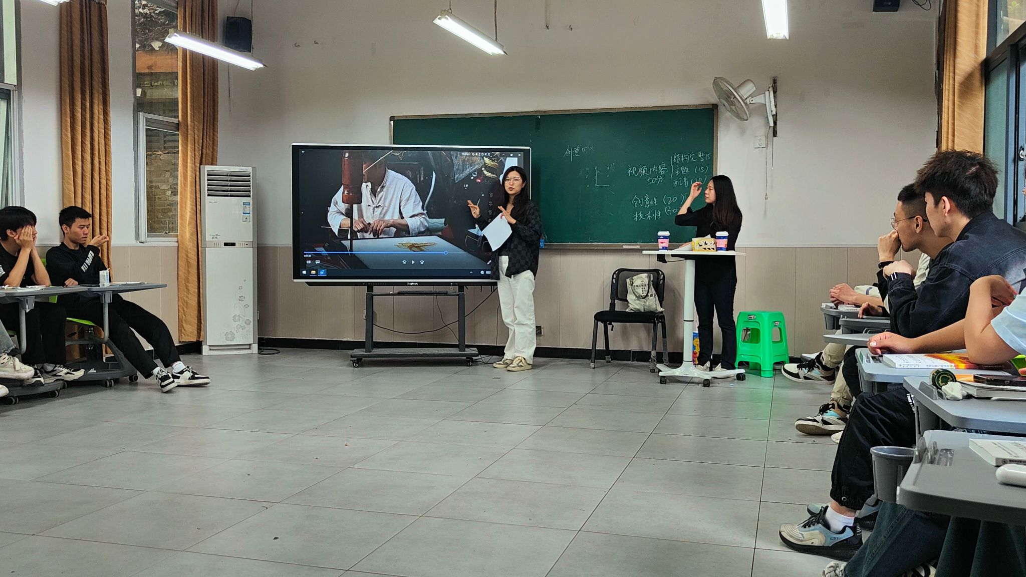 随后进入课程最精彩环节,《博雅英语(1)》的学生们分组展示了他们的作品,包括《甜蜜记忆-糖画》、《泥塑匠心》和《火锅与科技创新》等视频。每组展示结束后,陈曦老师从视频内容、剪辑、创意和配乐等多个维度提出了专业的指导意见,而戴华老师则从语言表达角度,对学生的英语表达能力和发音进行了精准点评。