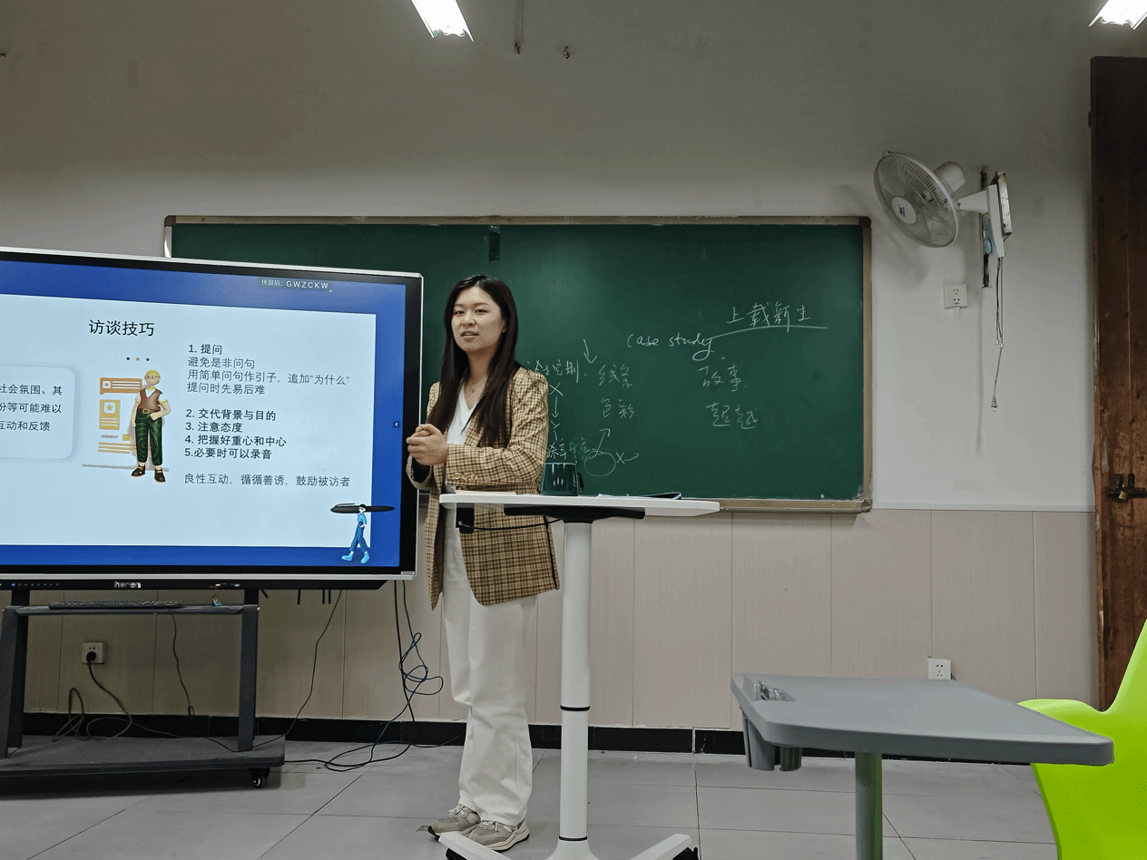 最后,陈曦老师援引生活中的交流案例,向学生们进一步拆解了访谈中方法与技巧的应用,分享了自己对有效交流的看法,引导学生在访谈之前做足准备,交流过程中善于运用发散思维展开话题。