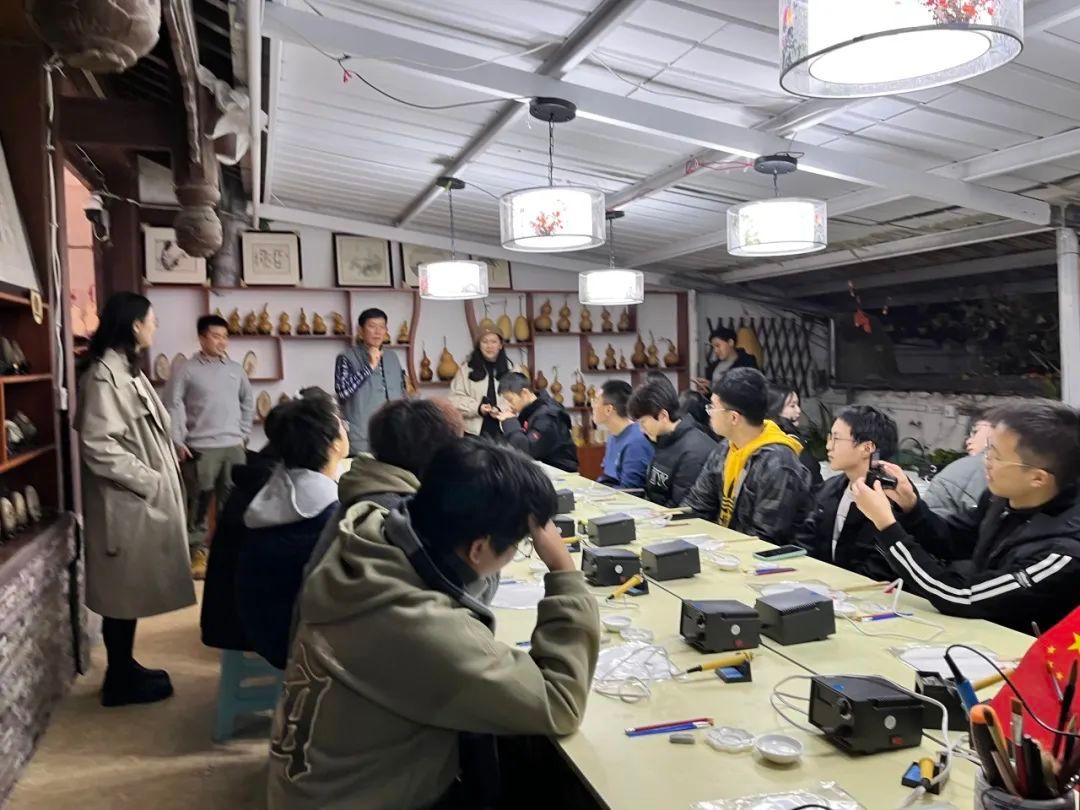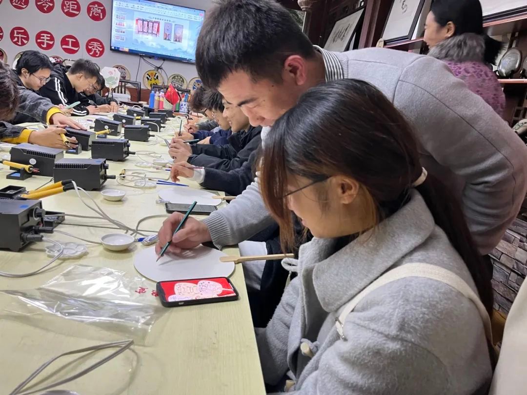 《生活中的数学思维》课程由朱雪珂、李欢、钟婷婷三位老师带领学生前往文峰古街进行了一次非遗文化体验课程实践活动,活动主要结合教学内容“密铺”和非遗项目“烙铁画和峡砚”的共通之处而展开。“密铺”在艺术创作中较为常用,因此在非遗手工艺品创作过程中,要求学生围绕主题完成创作。在非遗传承人及指导老师们的细心教导下,同学们逐渐熟练其创造技巧,同学们创作出了一幅幅富有艺术感的作品,如有些同学画他们喜欢的事物;有些同学画出了他们对家人的爱有些同学画出了对即将到来的圣诞节的盼望。在创作过程中,他们惊奇地发现数学思维起到了重要的作用。他们需要运用几何学中的各种属性和关系来构思他们惊和绘制图案,从而提高了他们的空间想象力和创造力。