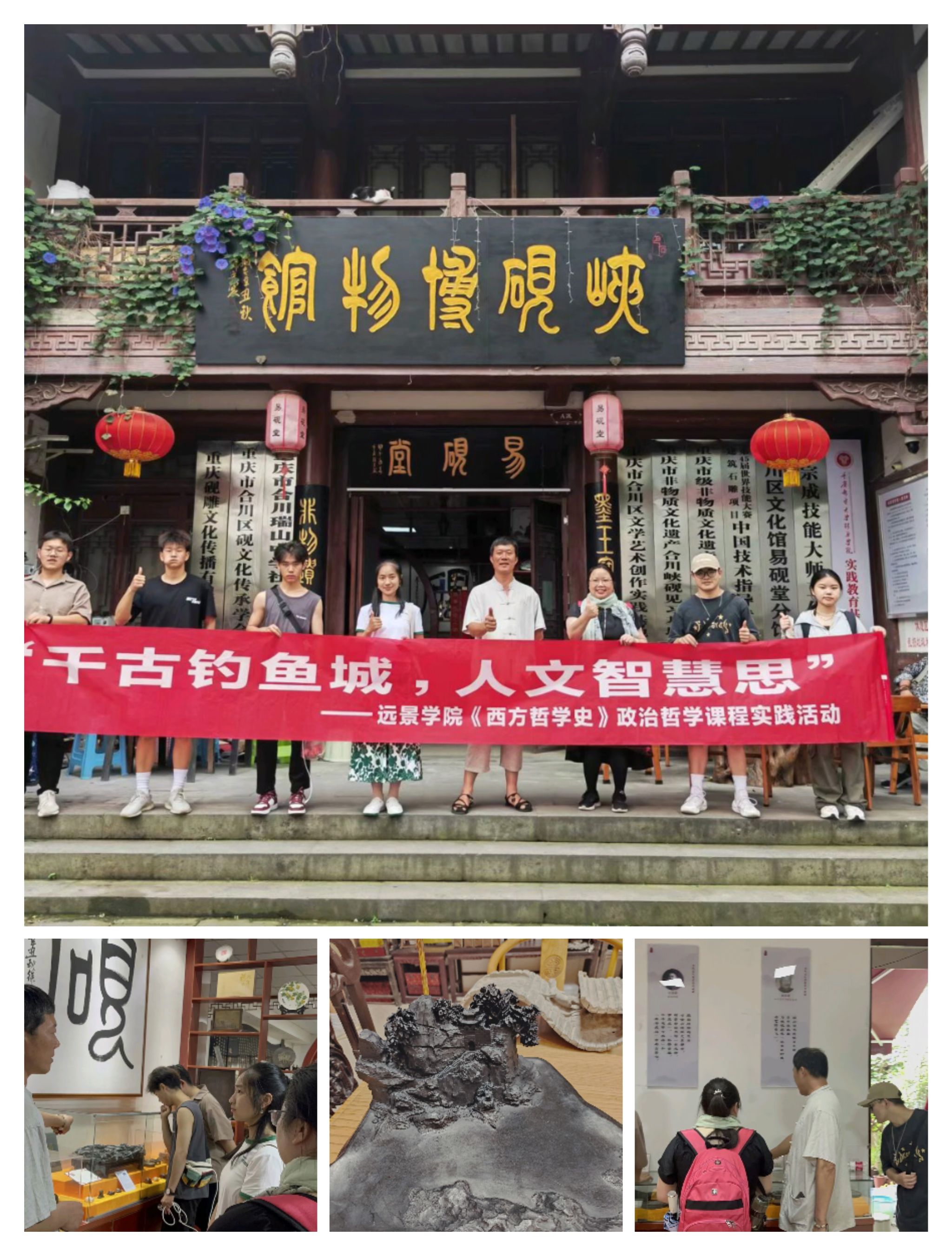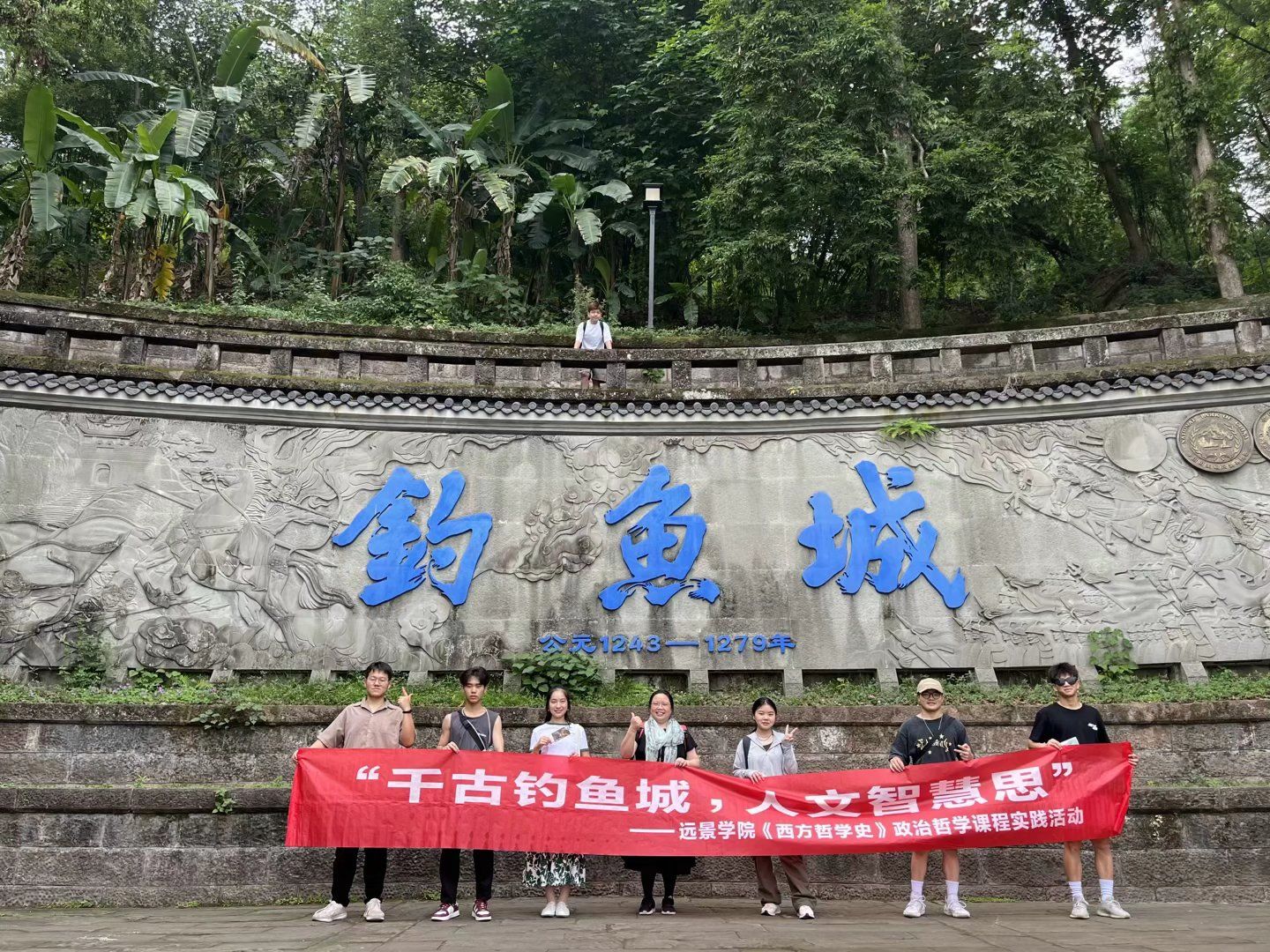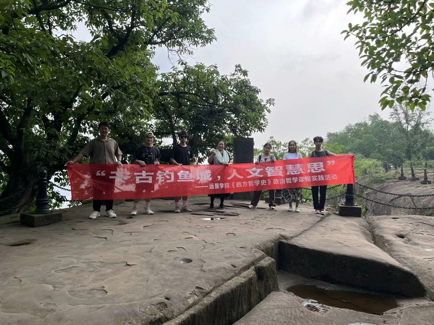 “如果你希冀进入无限的境界,那就该对有限的事物进行彻底的探索。”每个人都会打上自己生活城市的烙印,合川作为一座历史文化悠久的城市,它的文明开启和文化传承也深深地影响着生活于其中的人们。为更好的进行人文类通识课程实践与地域文化融合研究,2023年5月27日周六,远景学院哲学老师吴慈荷带领远景学院《西方哲学史》课程班学生们,开展了一次以“千古钓鱼城,人文智慧思”为主题的政治哲学课程实践活动,用一天的时间,走访了钓鱼城博物馆(了解历史)、文峰古街(自然地理)、合川区美术馆(艺术表达)和钓鱼城遗址现场(古战场遗址),通过站点的方式,一站一站的进行智慧探索之旅。