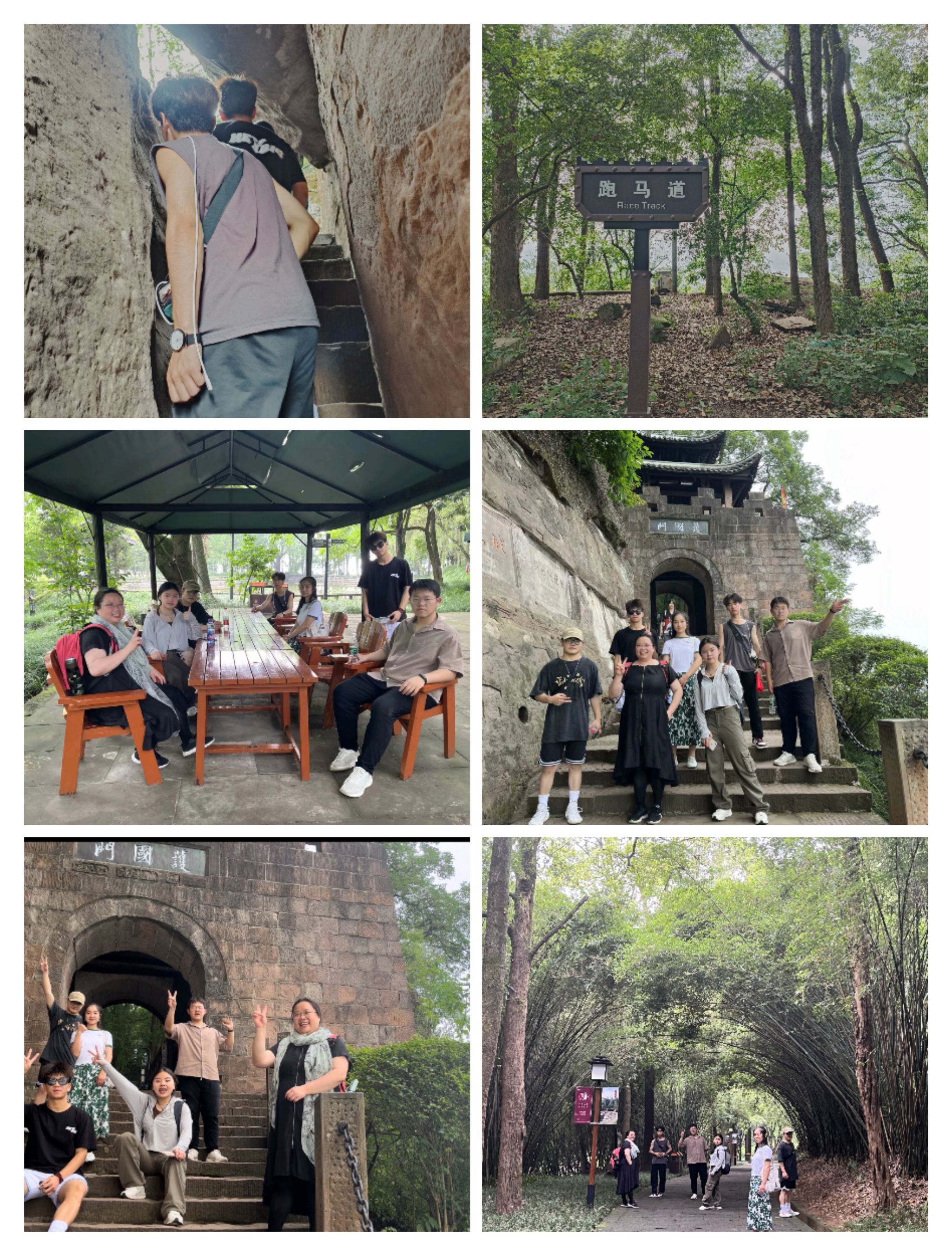 第四站——钓鱼城遗址现场。辗转来到古战场遗址,基于前面对钓鱼城历史概况的了解,吴老师带领着同学们一起走访这个承载着历史文化印记的地方。始关门、护国门、钓鱼台、寺庙、佛像、古树、石刻等都是历史性的名词,刻在石碑上,印在脑海里。亲临古战场遗址,在城墙上俯视江河,静心思考着:遗址遗留下来的是历史、是文化、是智慧。