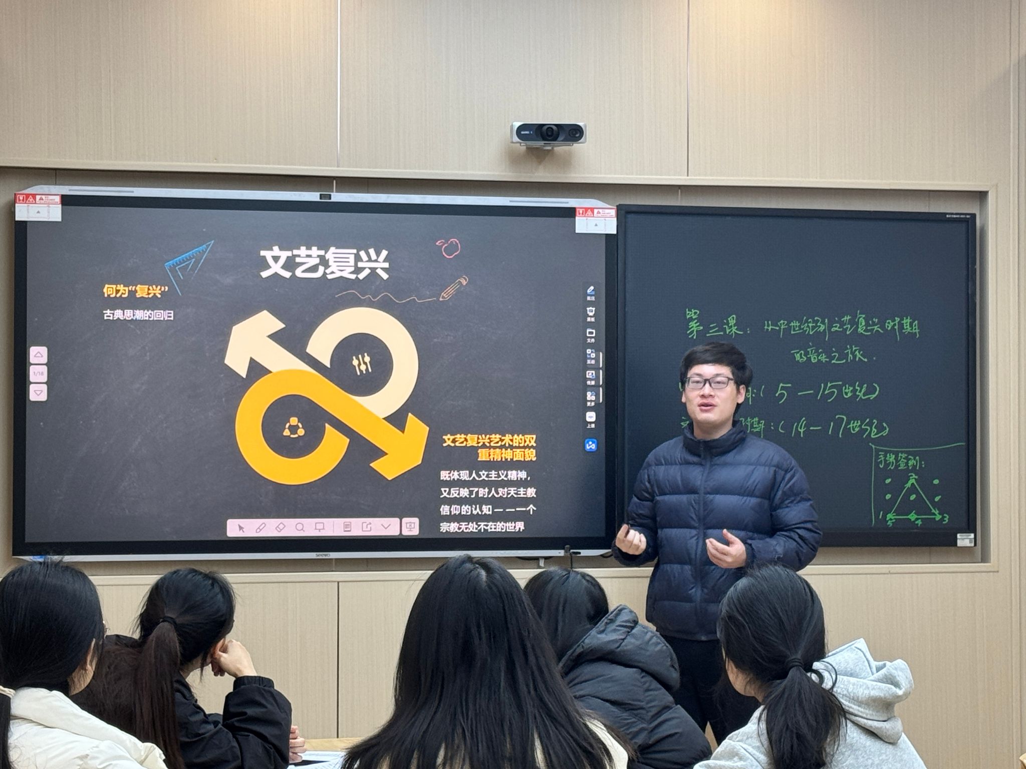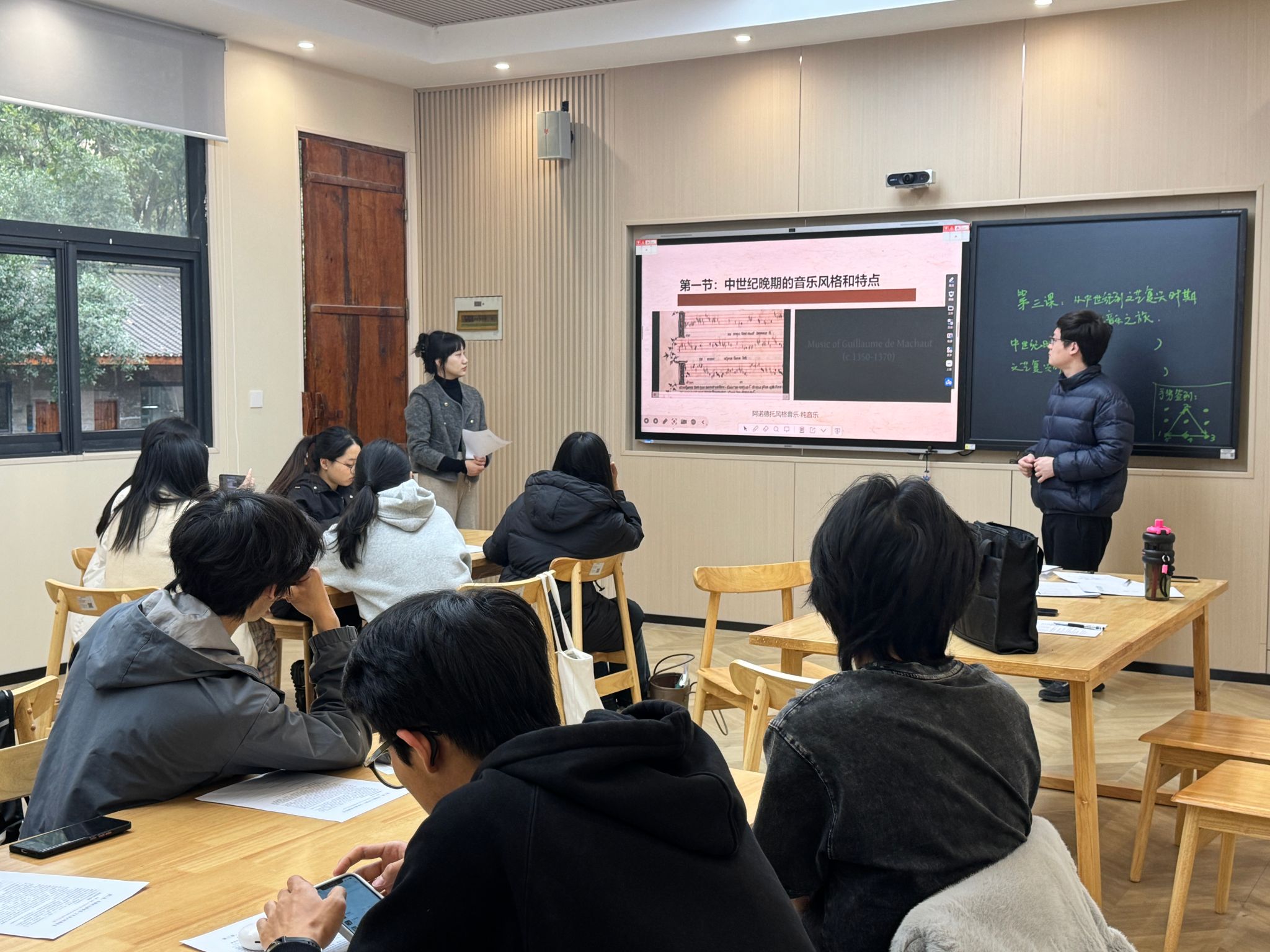 你心中的中世纪与文艺复兴时期音乐是什么样的?为了更好回答这一问题,远景学院音乐学博士郭杨老师携手拥有世界史背景的鲁明宙老师,在菩提多媒体4教室《古典音乐鉴赏》课堂上,共同呈现了一堂别开生面的双师授课。通过分析中世纪到文艺复兴时期的音乐与历史内容,将世界史与音乐的边界打破,为同学们带来了一次深刻的跨学科学习体验。