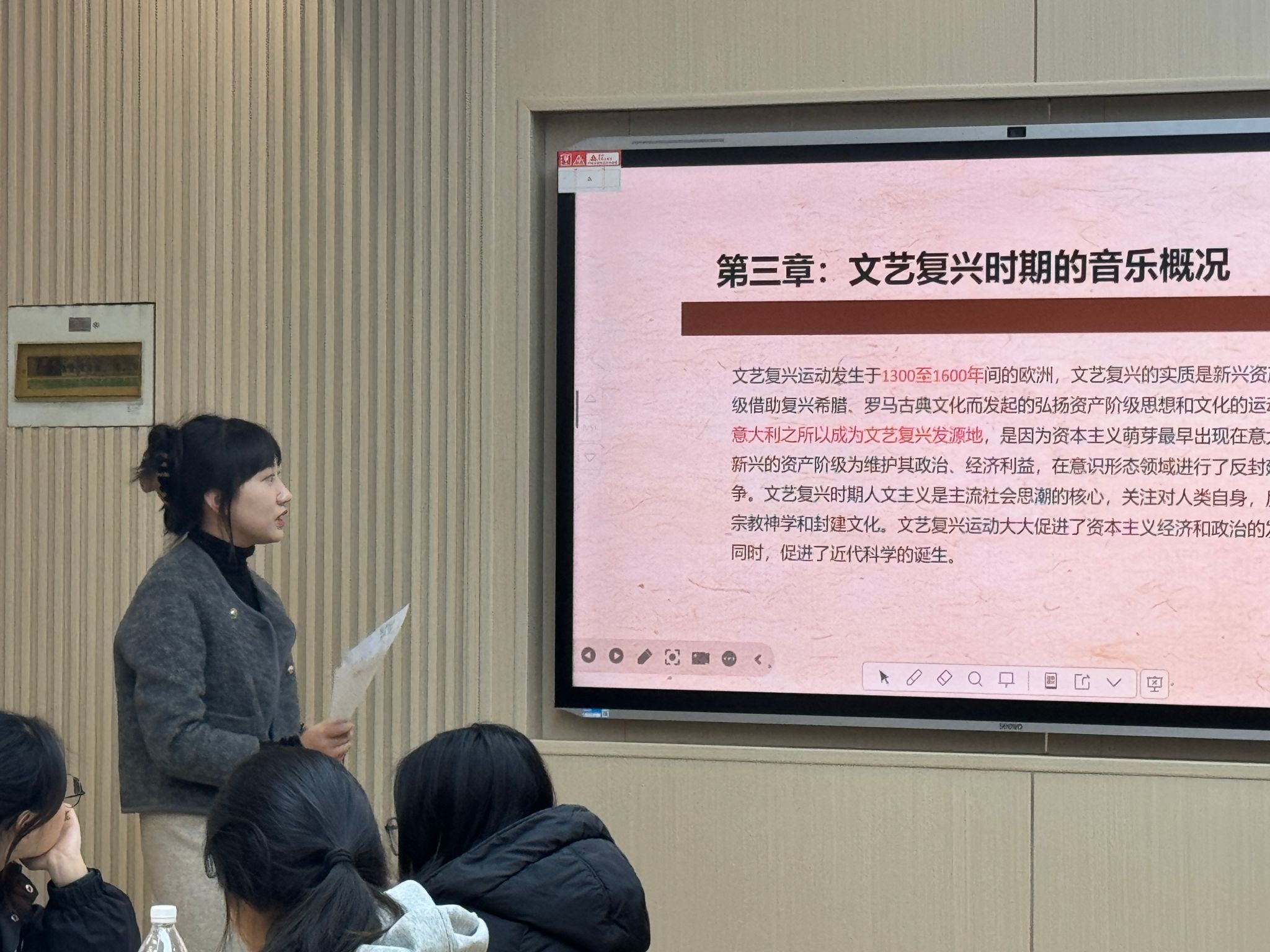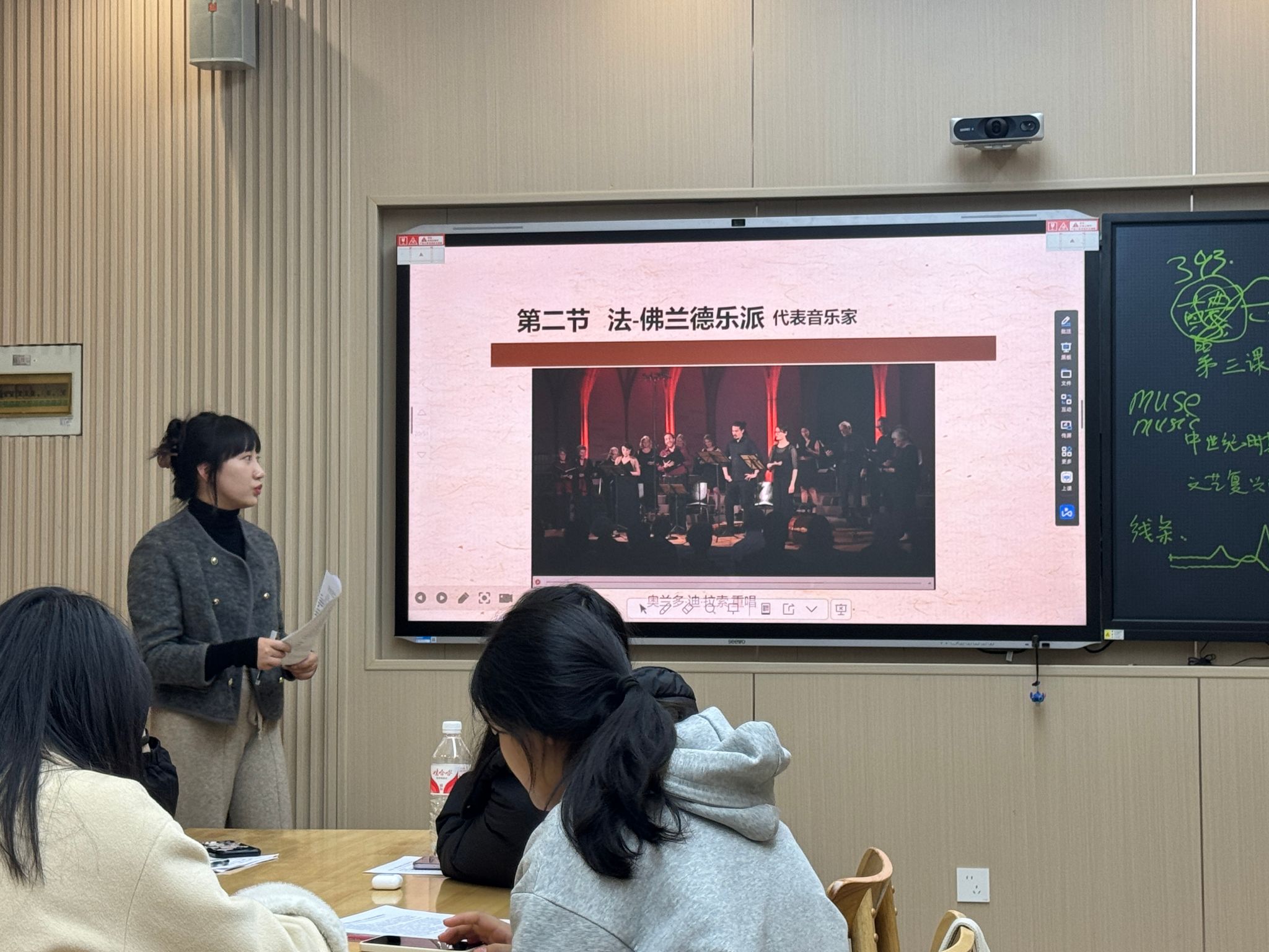 《古典音乐鉴赏》的课堂宛如一座时空交错的艺术殿堂,一场别出心裁的知识盛宴在这里华丽上演。郭杨老师与鲁明宙老师宛如两位艺术与历史文化的引路人,携手引领学生们踏入了“从中世纪到文艺复兴时期的宗教音乐之旅”,开启了一场探寻宗教音乐魅力变迁的深度文化征程。课程伊始,阿诺德托风格的独唱与合唱成为了这场音乐盛宴的开场华章。两种风格截然不同的旋律在学生们的耳畔交织碰撞,瞬间拉开了两个时代音乐风格差异的大幕。